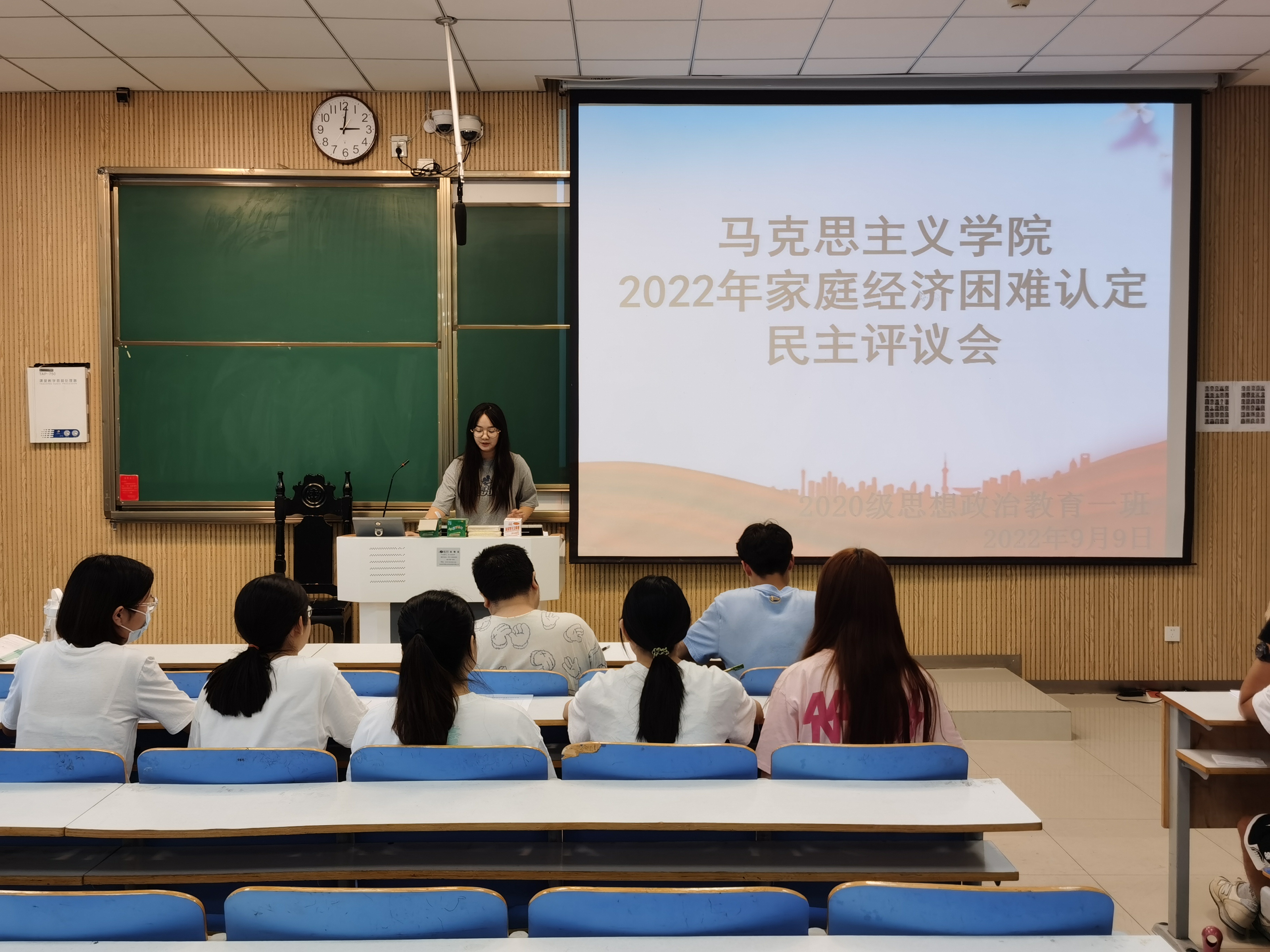 为做好家庭经济困难学生的认定工作,9月9日下午,sjb世俱杯网站2020级思想政治教育一班在社科楼515教室召开2022年班级贫困认定民主评议会。评议小组成员、申请人及监督人参与了本次会议。会议由团支书卢茜雨主持。