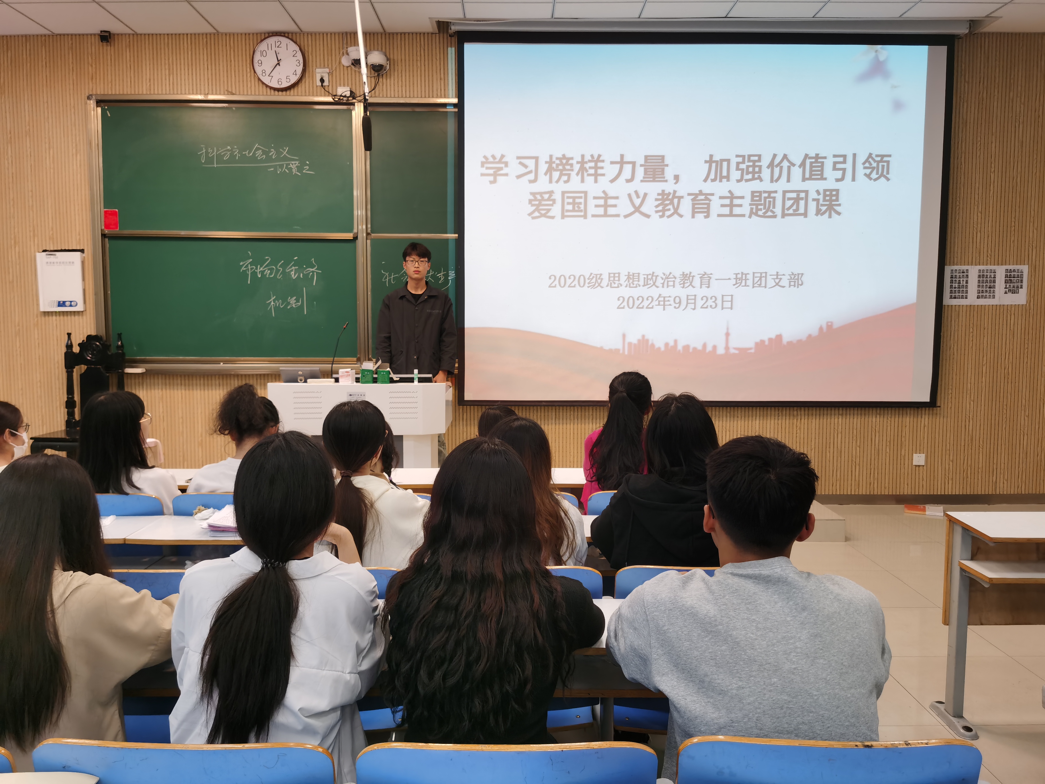 为加强团支部的思想文化建设,9月23日上午,sjb世俱杯网站2020级思想政治教育一班团支部在社科楼515教室召开“学习榜样力量,加强价值引领”爱国主义教育主题团课。2020级思想政治教育一班团支部全体成员参加此次会议。会议由团支部副书记白帅豪主持。