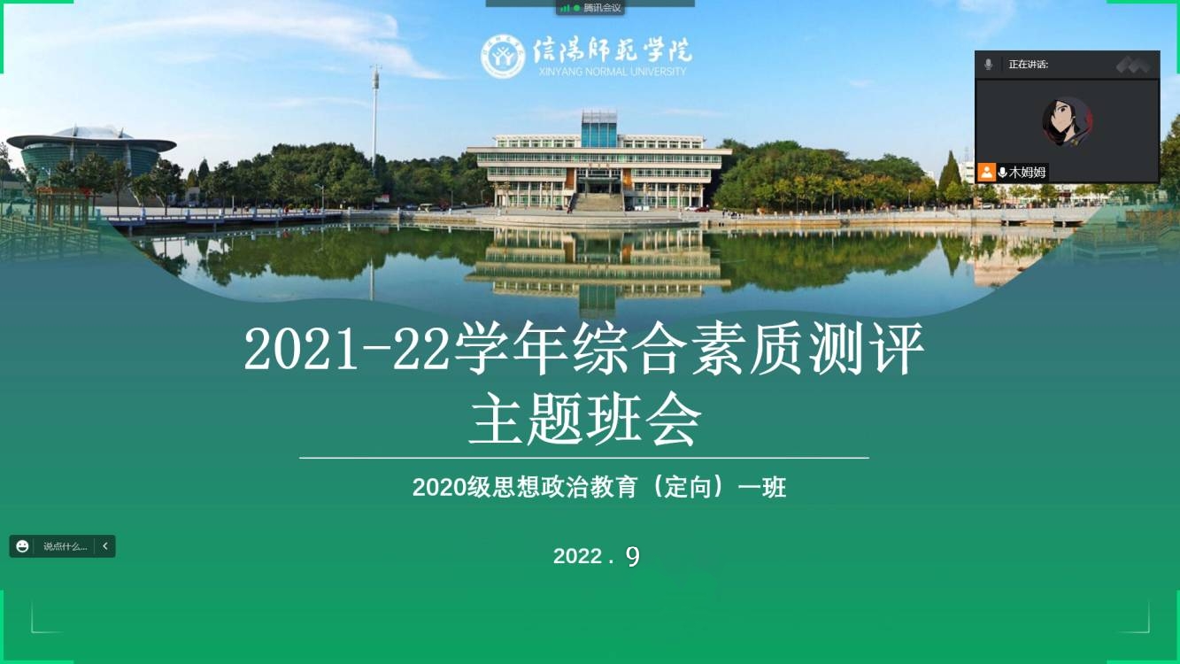 9月28日,sjb世俱杯网站2020级思想政治教育定向一班采用腾讯会议的形式顺利举办学年综合素质测评班会。定向一班全体学生参与了此次班会。