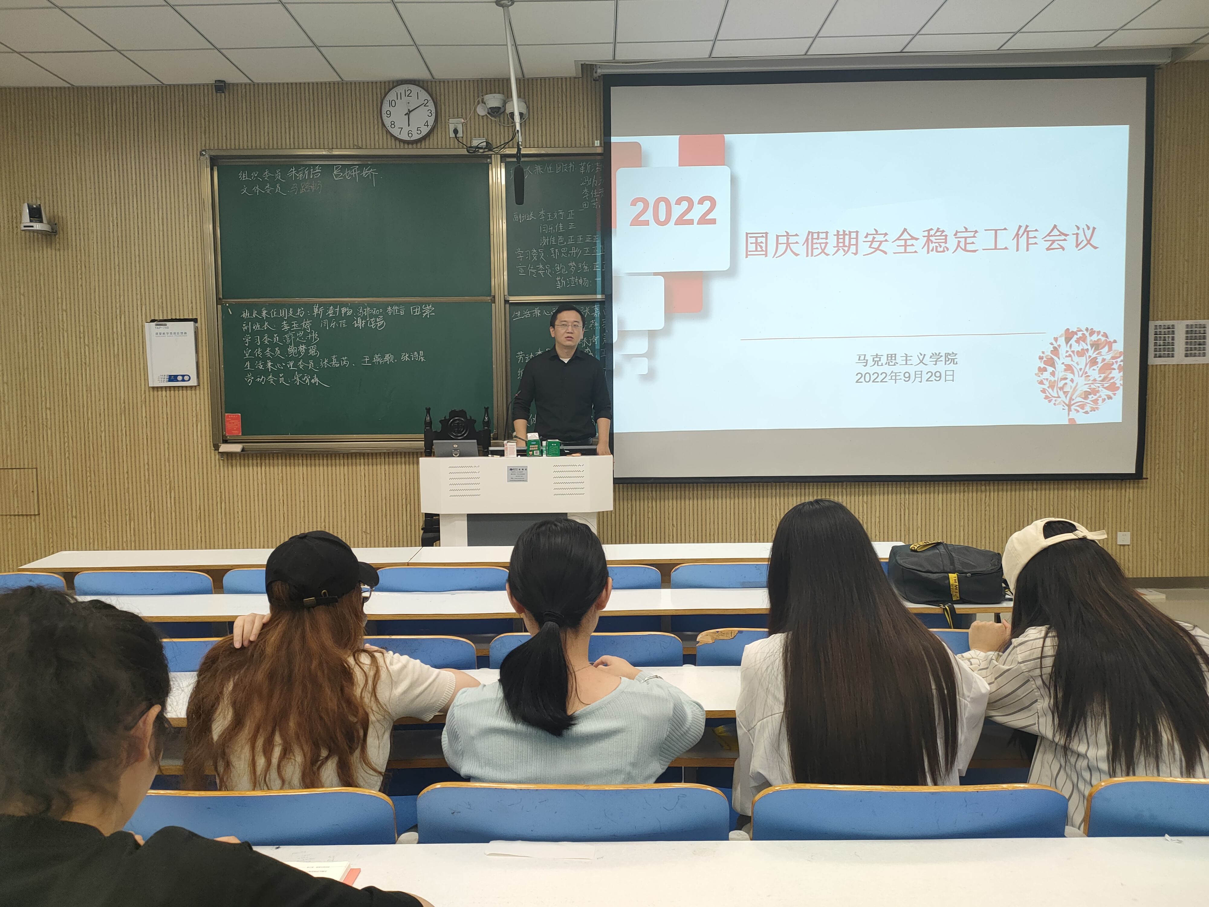 9月29日,sjb世俱杯网站2020级思想政治教育定向一班、普通一班在社科楼515教室顺利举办国庆假期安全稳定工作会议。定向一班、普通一班全体同学参与了此次会议。