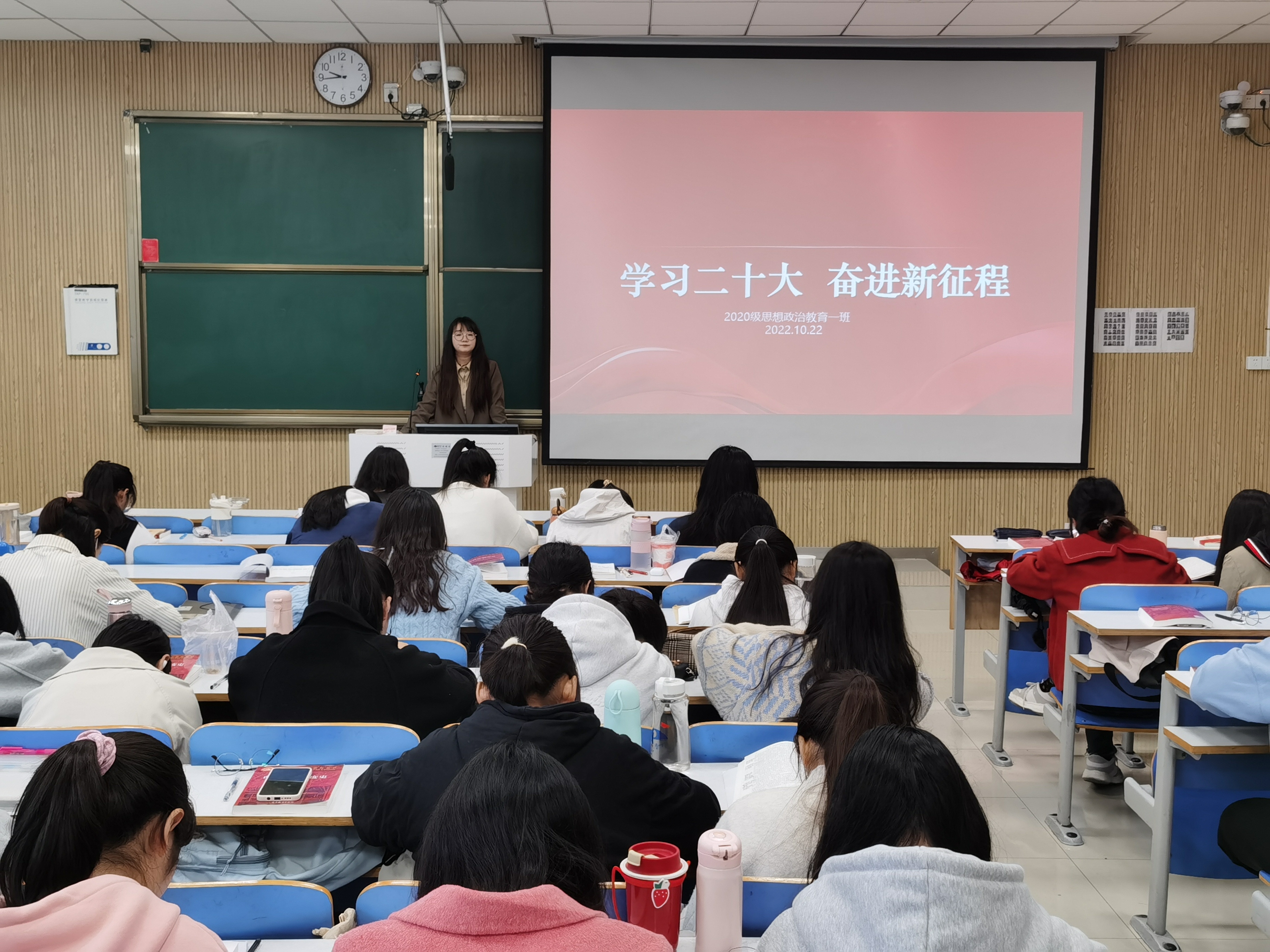10月22日上午,sjb世俱杯网站2020级思想政治教育一班团支部在社科楼515教室开展“学习二十大,奋进新征程”主题团课。2020级思想政治教育一班团支部全体团员参加此次团课,团课由团支部书记卢茜雨主持。