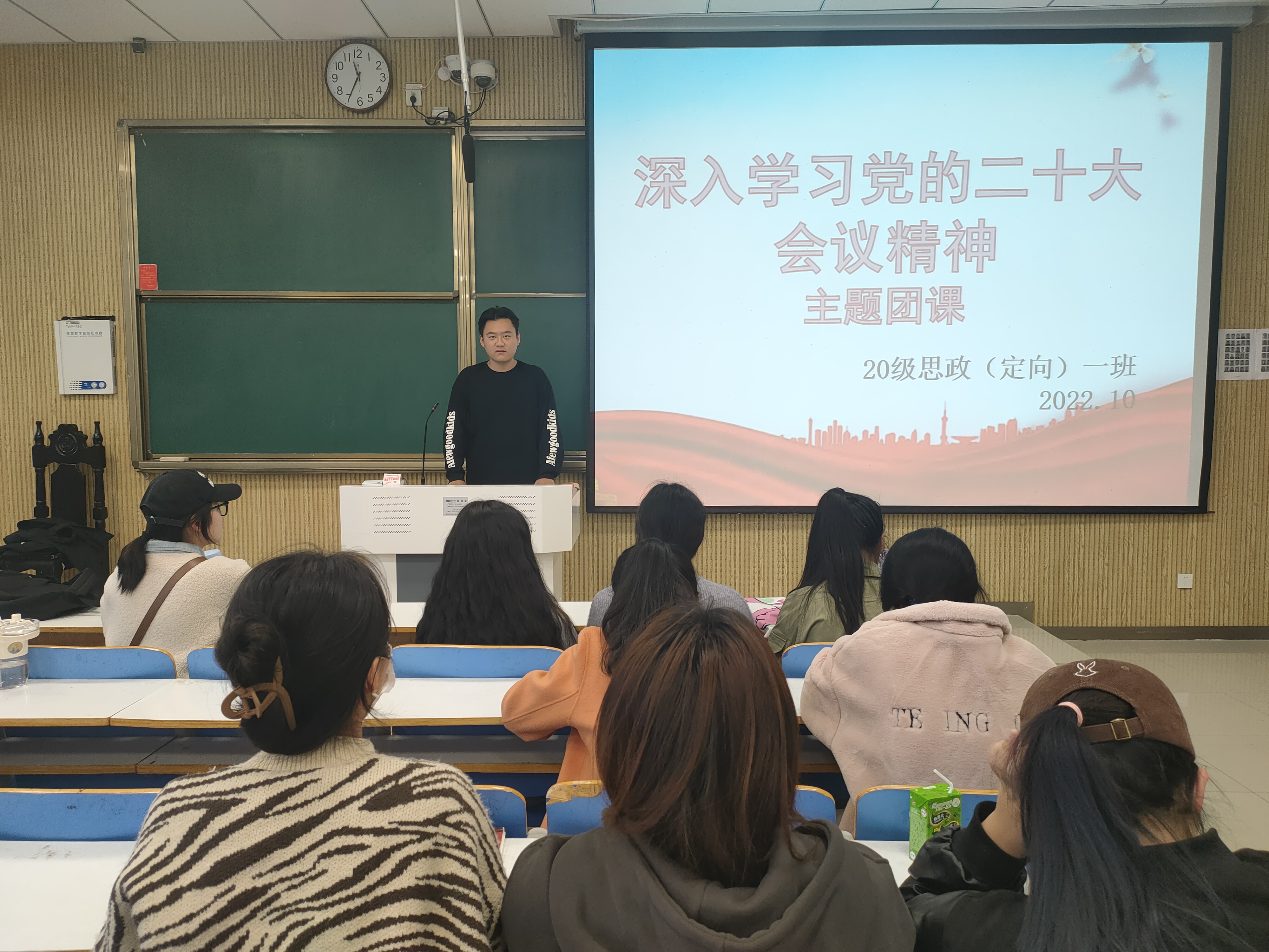 10月28日上午,sjb世俱杯网站2020级思想政治教育定向一班在社科楼515顺利举办深入学习党的二十大会议精神主题团课。定向一班全体学生聆听了此次团课。