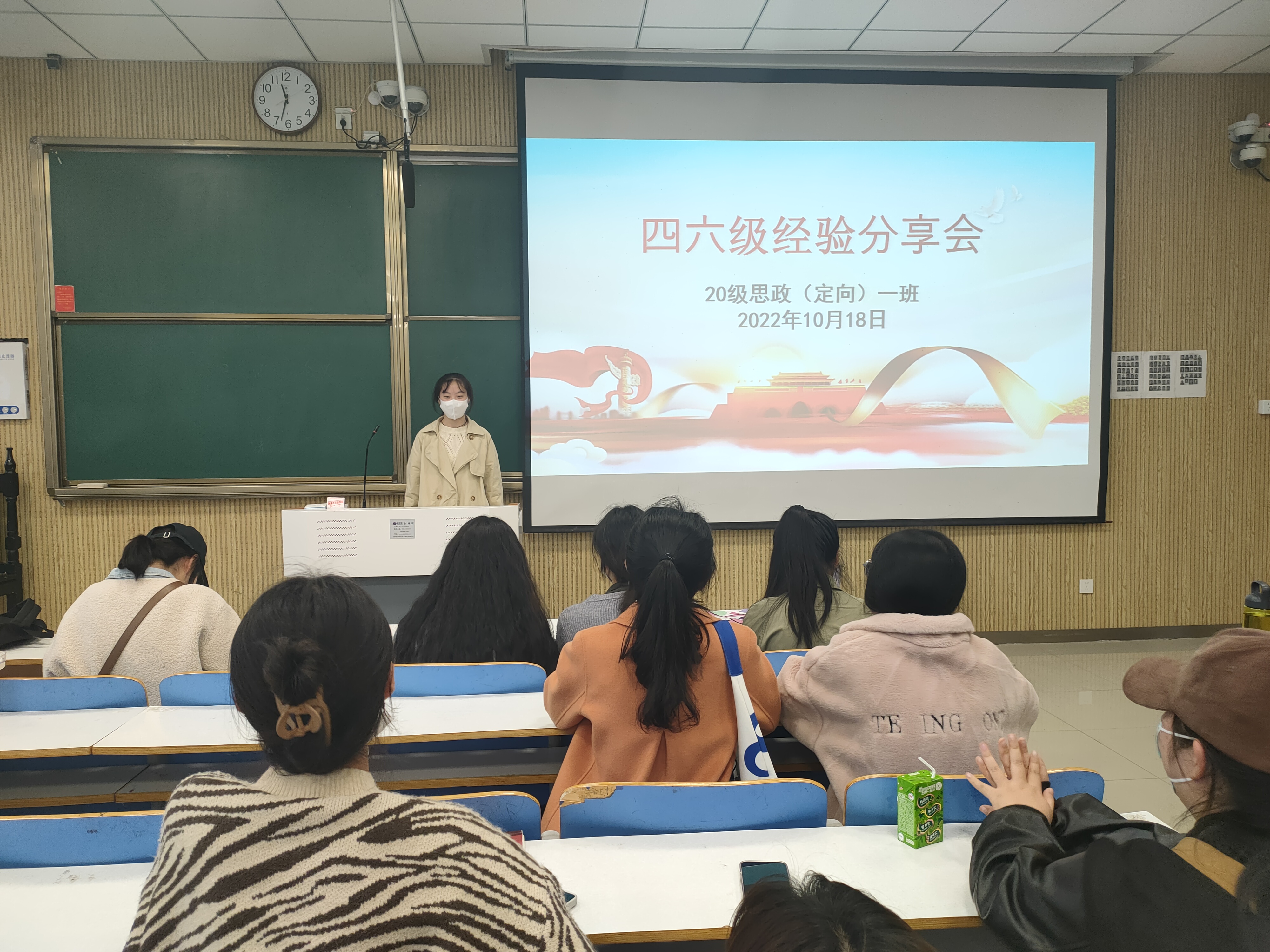 10月28日上午,sjb世俱杯网站2020级思想政治教育定向一班在社科楼515召开大学生四、六级考试经验分享会。定向一班全体同学聆听了此次分享会。