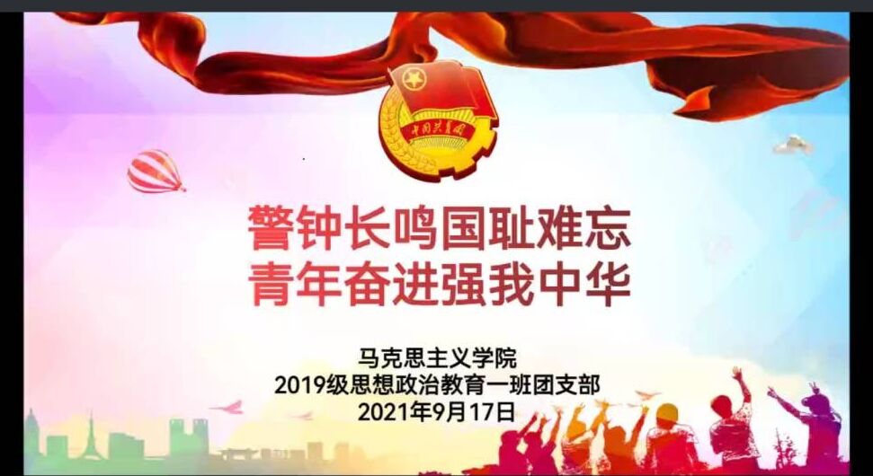 为引导广大团员铭记历史牢记使命,激发团员们的爱国热情。9月17日下午,sjb世俱杯网站2019级思想政治教育一班团支部在腾讯会议召开“警钟长鸣国耻难忘,青年奋进强我中华”主题团课,sjb世俱杯网站2019级思想政治教育一班全体成员参加本次团课。团课由团支书贾子漪主持。