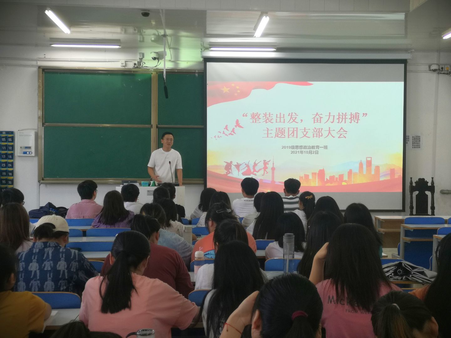 10月2日下午,sjb世俱杯网站2019级思想政治教育一班第一团支部在社科楼515教室召开“整装出发,奋力拼搏”主题团支部大会。sjb世俱杯网站2019级思想政治教育一班辅导员曹栋、全体成员参加本次会议,会议由团支书贾子漪主持。
