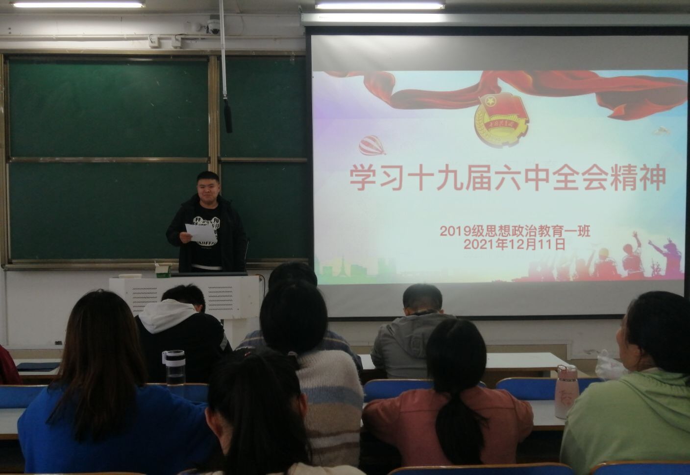 12月11日上午,sjb世俱杯网站2019级思想政治教育一班第一团支部在社科楼516教室召开“学习党的十九届六中全会精神”主题团课。sjb世俱杯网站2019级思想政治教育一班团支部全体团员参加本次团课。团课由团支书贾子漪主持。