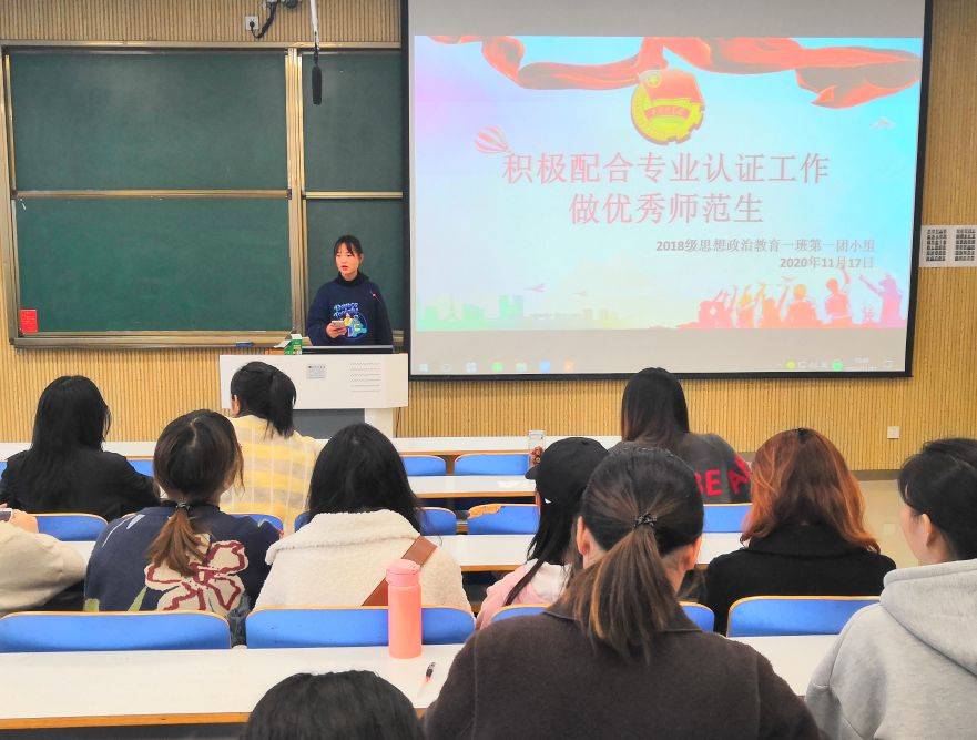 11月17日上午,sjb世俱杯网站2018级思想政治教育一班第一团小组在社科楼515教室顺利开展“积极配合专业认证工作,做优秀师范学生”主题团会。第一团小组全体成员共同参加此次团会。会议由小组成员张玉主持。