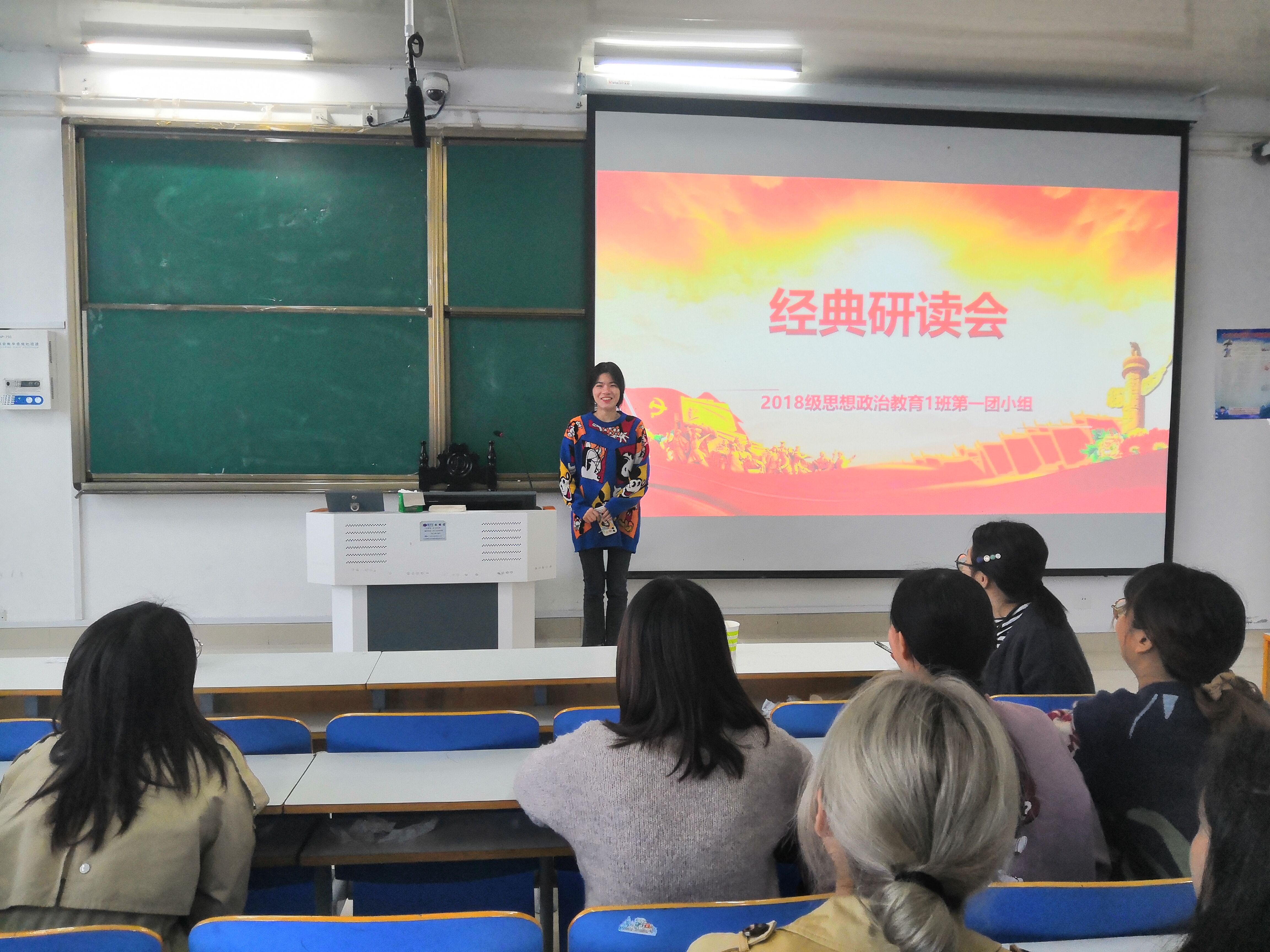 4月26日上午,sjb世俱杯网站2018级思想政治教育一班第一团小组在社科楼514教室顺利开展“经典研读”主题团会。第一团小组全体成员共同参加此次团会。该团会由团小组成员刘婕主持。