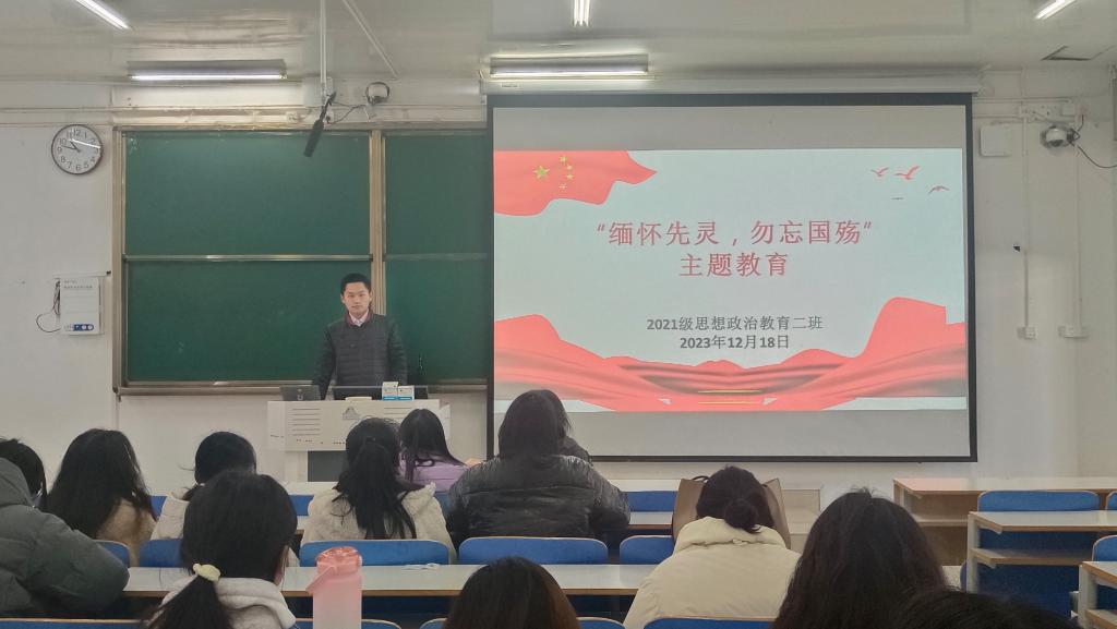 12月18日上午,sjb世俱杯网站2021级思想政治教育二班在社科楼514教室召开“缅怀先灵,勿忘国殇”主题团课。2021级思想政治教育二班全体团员参加此次团课。团课由副班长任振豪主持。