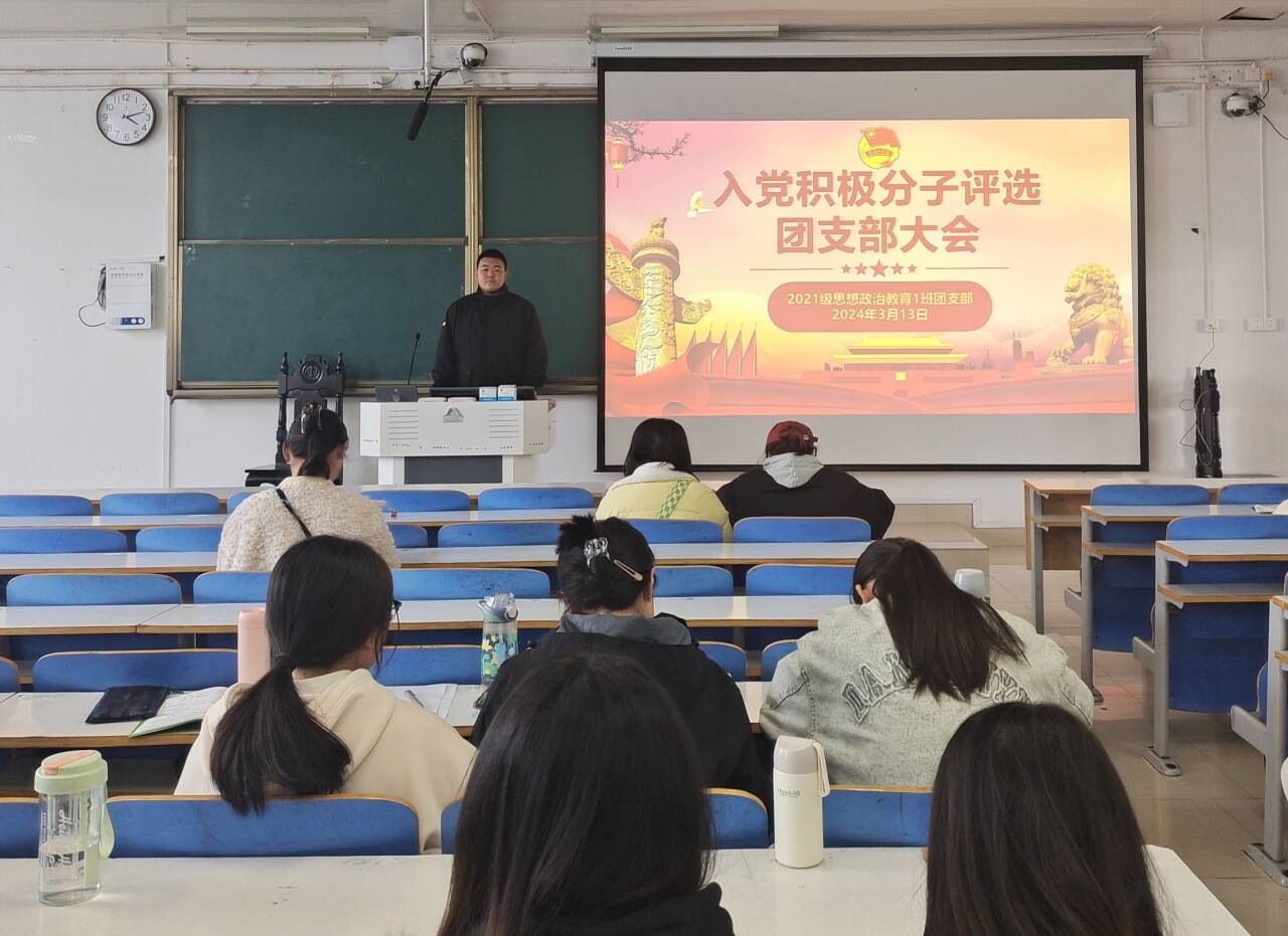 3月13日下午,sjb世俱杯网站2021级思想政治教育一班在社科楼514教室召开入党积极分子评选团支部大会。2021级思想政治教育一班全体团员参加本次会议。会议由团支书戴翰林主持。