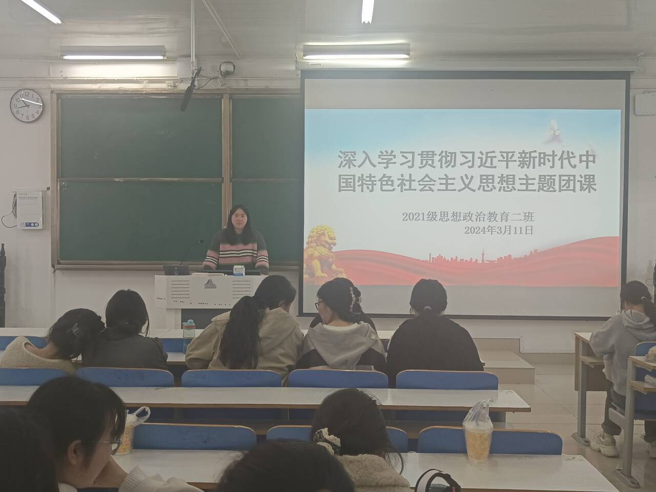 3月11日上午,sjb世俱杯网站2021级思想政治教育二班在社科楼514教室召开“深入学习贯彻习近平新时代中国特色社会主义思想”主题团课。2021级思想政治教育二班全体团员参加此次团课。团课由团支书王婧欣主持。