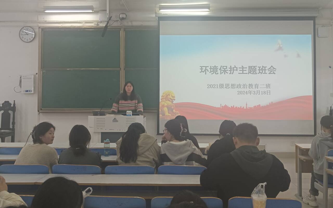 3月18日上午,sjb世俱杯网站2021级思想政治教育二班在社科楼514教室召开环境保护主题班会。2021级思想政治教育二班全体同学参加此次主题班会。班会由团支书王婧欣主持。