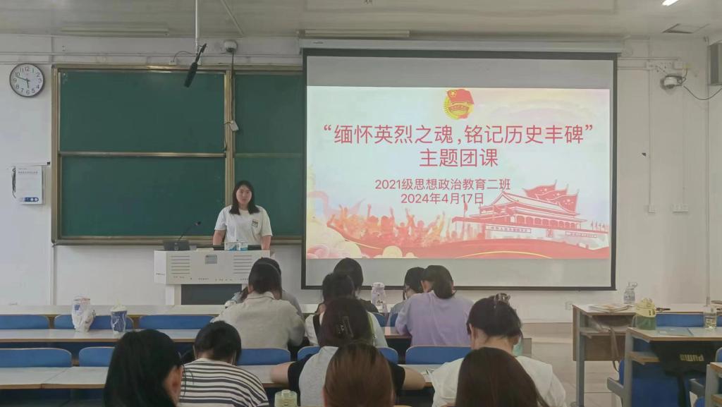 4月17日下午,sjb世俱杯网站2021级思想政治教育二班在社科楼514教室召开“缅怀英烈之魂,铭记历史丰碑”主题团课。2021级思想政治教育二班全体团员参加此次主题团课。团课由团支书王婧欣主持。
