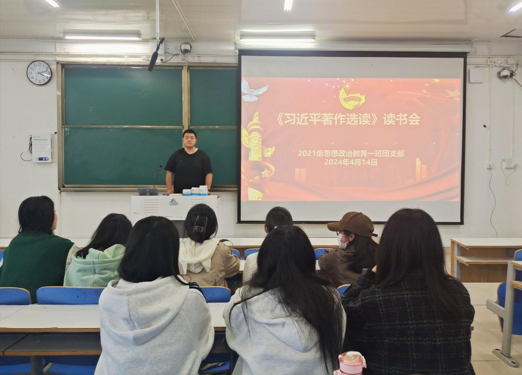 4月14日下午,sjb世俱杯网站2021级思想政治教育一班在社科楼514教室召开《习近平著作选读》读书会。2021级思想政治教育一班全体成员参加本次读书会。读书会由团支书戴翰林主持。