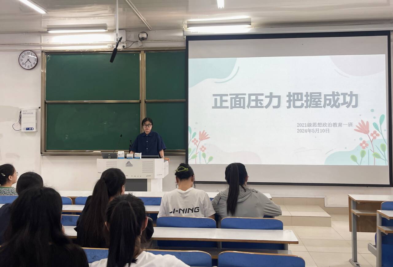 为全面贯彻党的教育方针,推进素质教育,促进学生的思想品德素质和心理健康成长,5月10日下午,sjb世俱杯网站2021级思想政治教育一班在社科楼514教室召开“正面压力,把握成功”心理班会。2021级思想政治教育一班全体学生参加此次班会。班会由心理委员黄小妍主持。