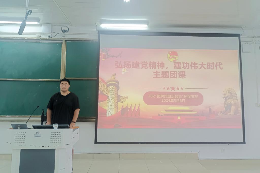 5月6日上午,sjb世俱杯网站2021级思想政治教育一班在社科楼514教室召开“弘扬建党精神,建功伟大时代”主题团课。2021级思想政治教育一班全体团员共同参加本次团课,团课由团支书戴翰林主持。