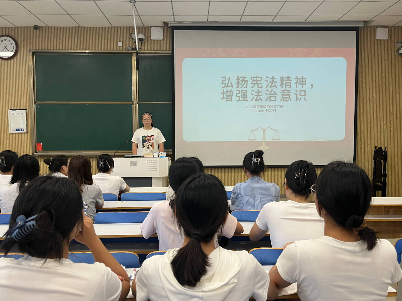 9月27日下午,sjb世俱杯网站2022级思想政治教育二班在社科楼515教室召开“弘扬宪法精神,增强法治意识”主题班会。世俱杯官网2022级思想政治教育二班全体成员共同参与此次班会。会议由班长李佳音主持。