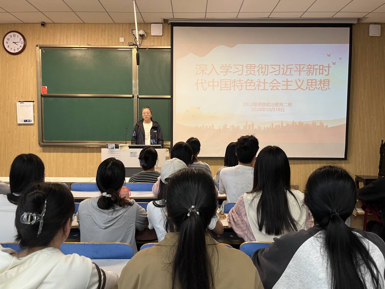 10月18日下午,sjb世俱杯网站2022级思想政治教育二班在社科楼515教室召开“深入学习贯彻习近平新时代中国特色社会主义思想”主题团课。世俱杯官网2022级思想政治教育二班全体成员共同参与此次班会。会议由团支书李佳音主持。