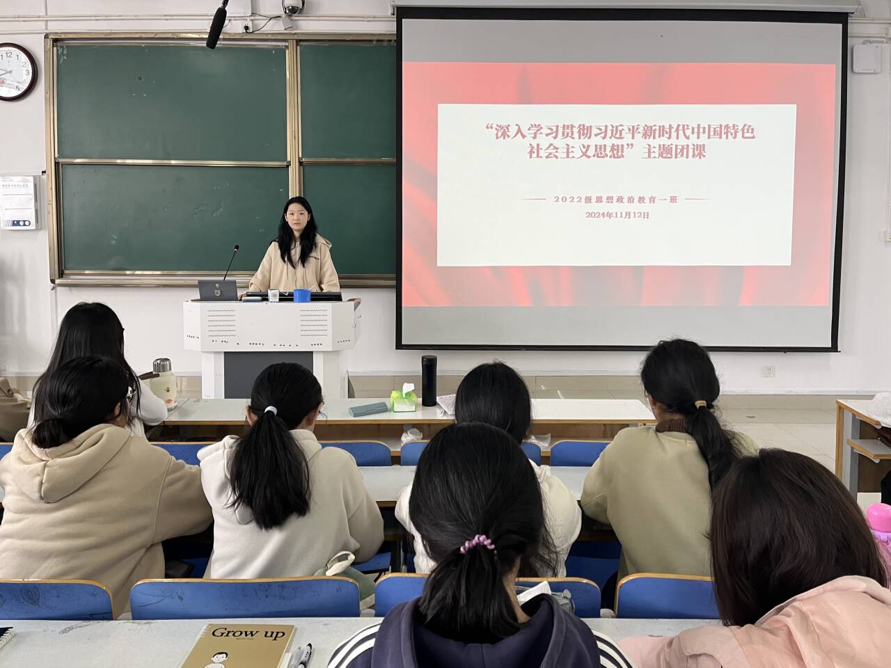 11月12日上午,sjb世俱杯网站2022级思想政治教育一班在社科楼514教室召开“深入学习贯彻习近平新时代中国特色社会主义思想”主题团课,世俱杯官网2022级思想政治教育一班全体同学共同参与本次团课,团课由团支书李佳茹主持。