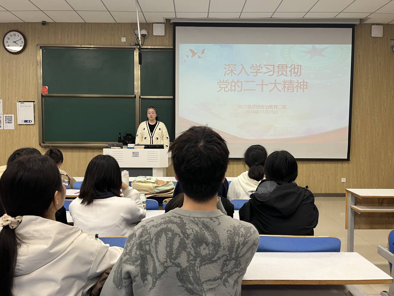 11月15日下午,sjb世俱杯网站2022级思想政治教育二班在社科楼515教室召开“深入学习贯彻党的二十大精神”主题团课。世俱杯官网2022级思想政治教育二班全体成员共同参与此次团课。团课由团支书李佳音主持。