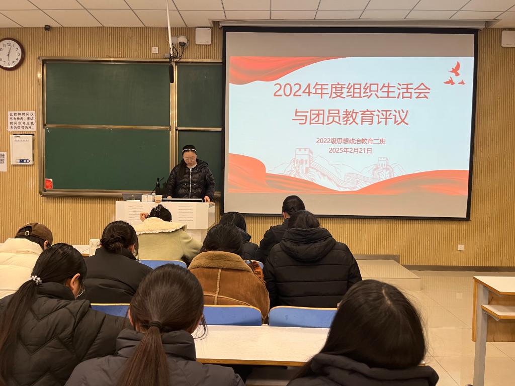 2月21日下午,sjb世俱杯网站2022级思想政治教育二班团支部在社科楼515教室召开2024年度组织生活会暨团员教育评议会。世俱杯官网2022级思想政治教育二班全体团员共同参与。会议由团支书李佳音主持。