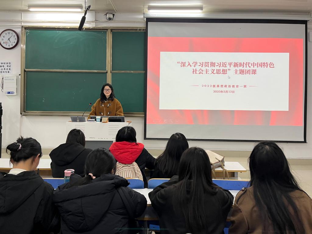 为加强对共青团员的政治锻造,进一步学习领会习近平新时代中国特色社会主义思想,3月12日下午,sjb世俱杯网站2022级思想政治教育一班在社科楼514教室开展“深入学习贯彻习近平新时代中国特色社会主义思想”团课,世俱杯官网2022级思想政治教育一班全体同学共同参与本次团课,团课由团支书李佳茹主持。