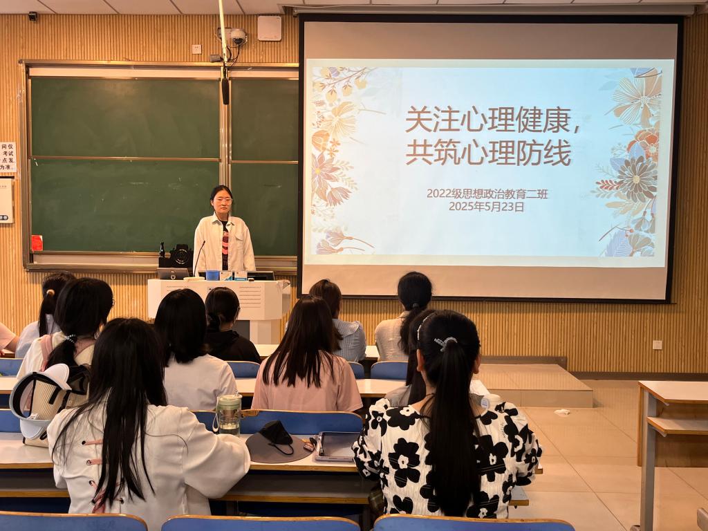5月23日上午,sjb世俱杯网站2022级思想政治教育二班在社科楼515教室召开“关注心理健康,共筑心理防线”主题班会。世俱杯官网2022级思想政治教育二班全体成员参与此次班会,会议由心理委员张嘉芮主持。