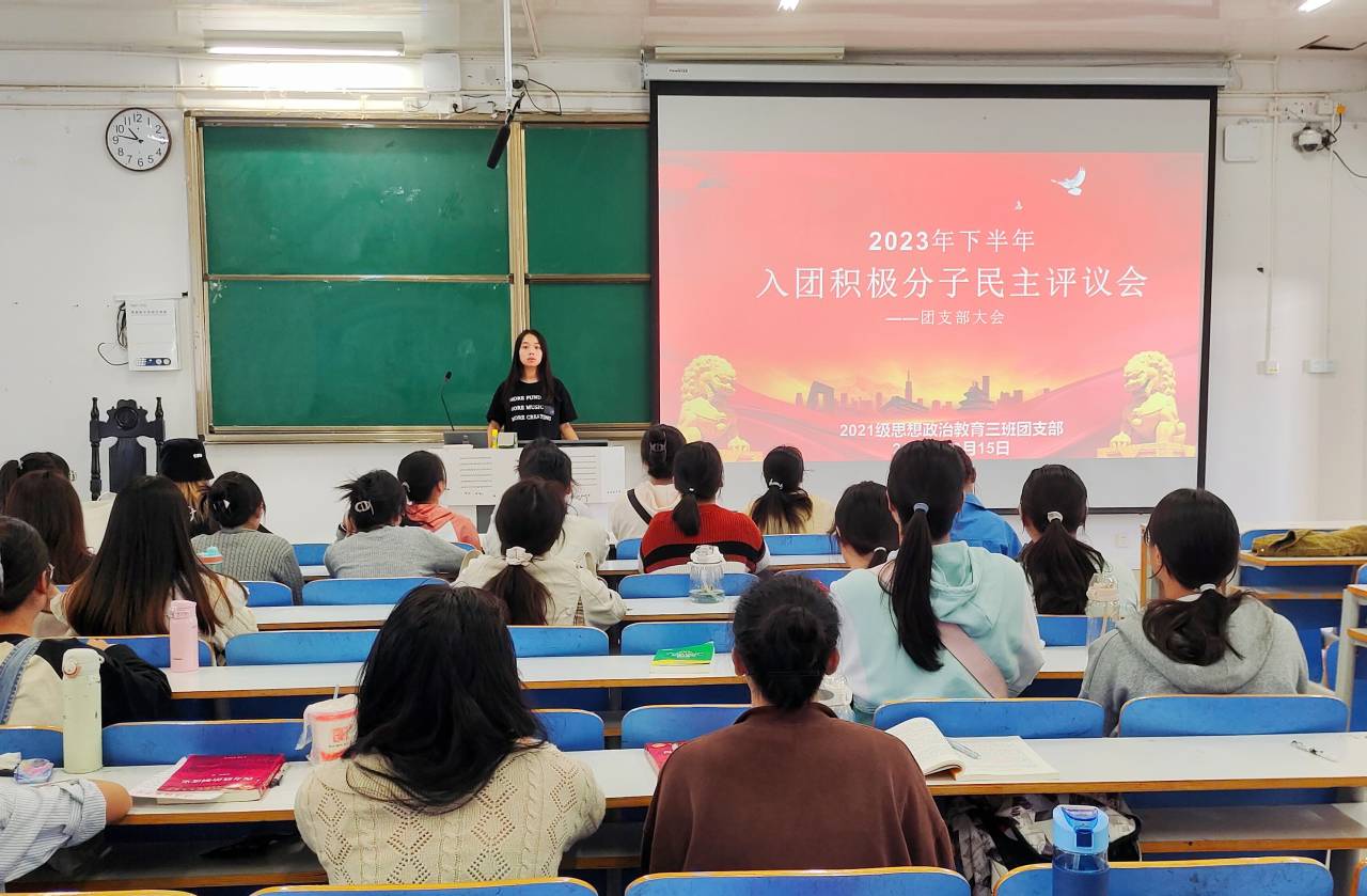 10月15日上午,sjb世俱杯网站2021级思想政治教育三班在社科楼514召开2023年下半年入团积极分子民主评议会。2021级思想政治教育三班全体团员以及两位候选人参加了此次会议,会议由团支书王岚霄主持。