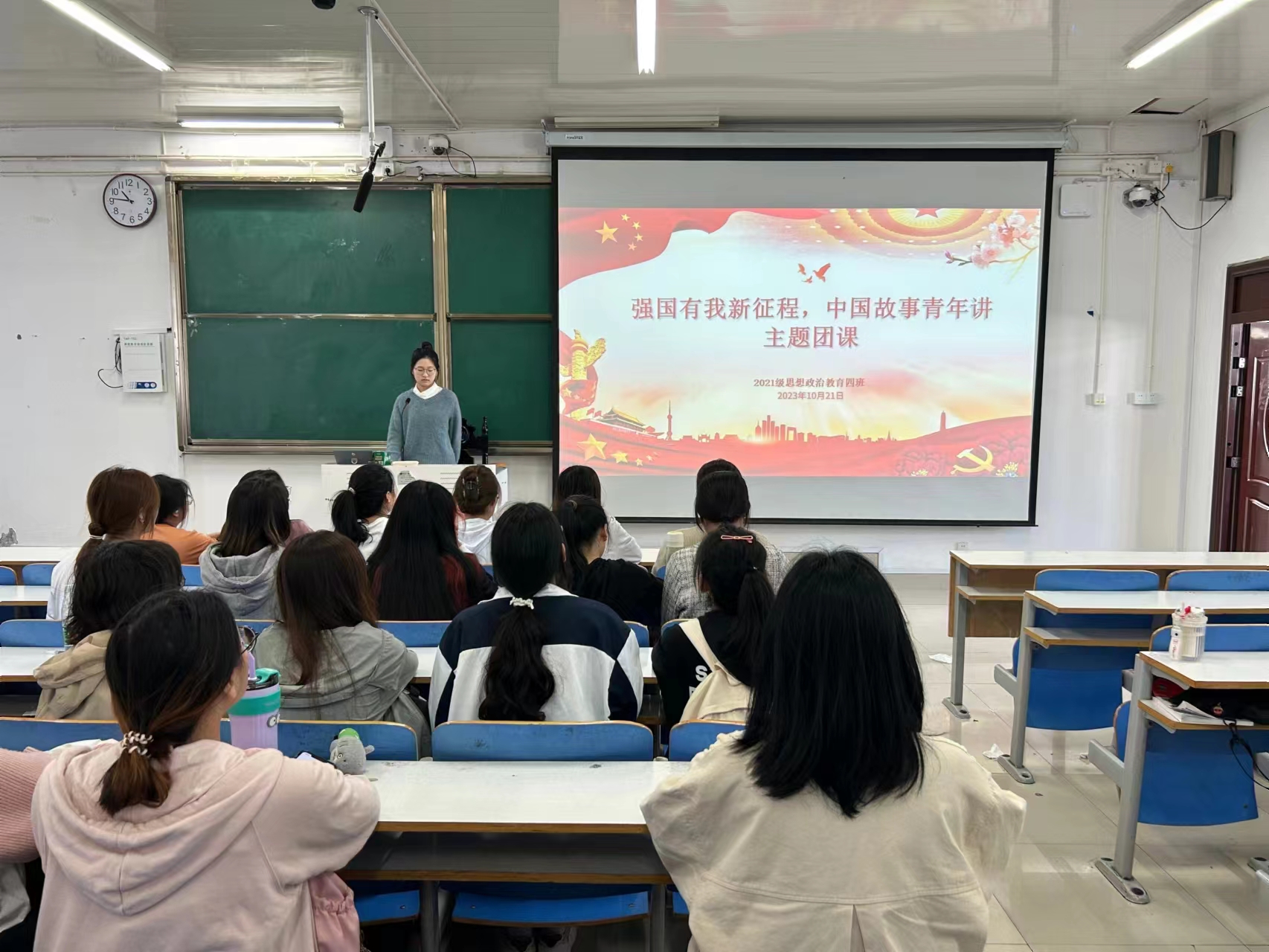10月21日下午,sjb世俱杯网站2021级思想政治教育四班在社科楼514教室开展“强国有我新征程,中国故事青年讲”主题团课。2021级思想政治教育四班全体学生共同参加本次团课。团课由团支书刘珂含主持。