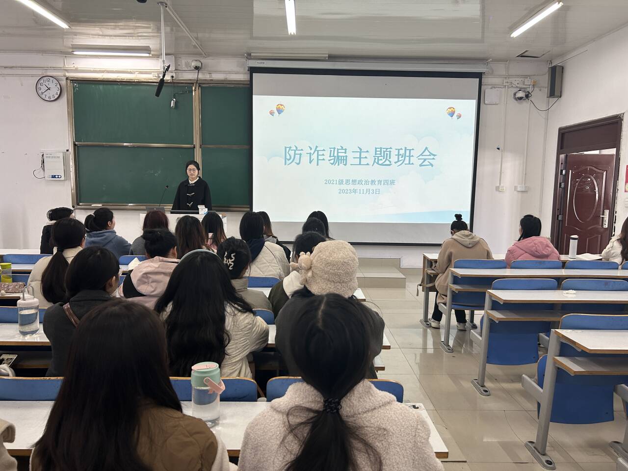 11月3日上午,sjb世俱杯网站2021级思想政治教育四班在社科楼515教室开展防诈骗主题班会。2021级思想政治教育四班全体学生共同参加本次班会。班会由团支书刘珂含主持。