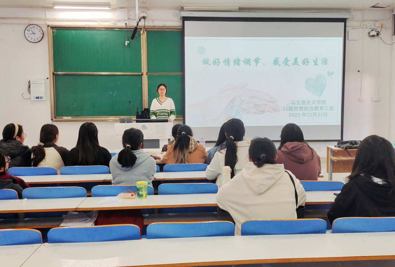 11月21日下午,sjb世俱杯网站2021级思想政治教育三班在社科楼514教室举办“做好情绪调节,感受美好生活”主题团课。2021级思想政治教育三班全体成员参加了此次会议。会议由心理委员许竞文主持。