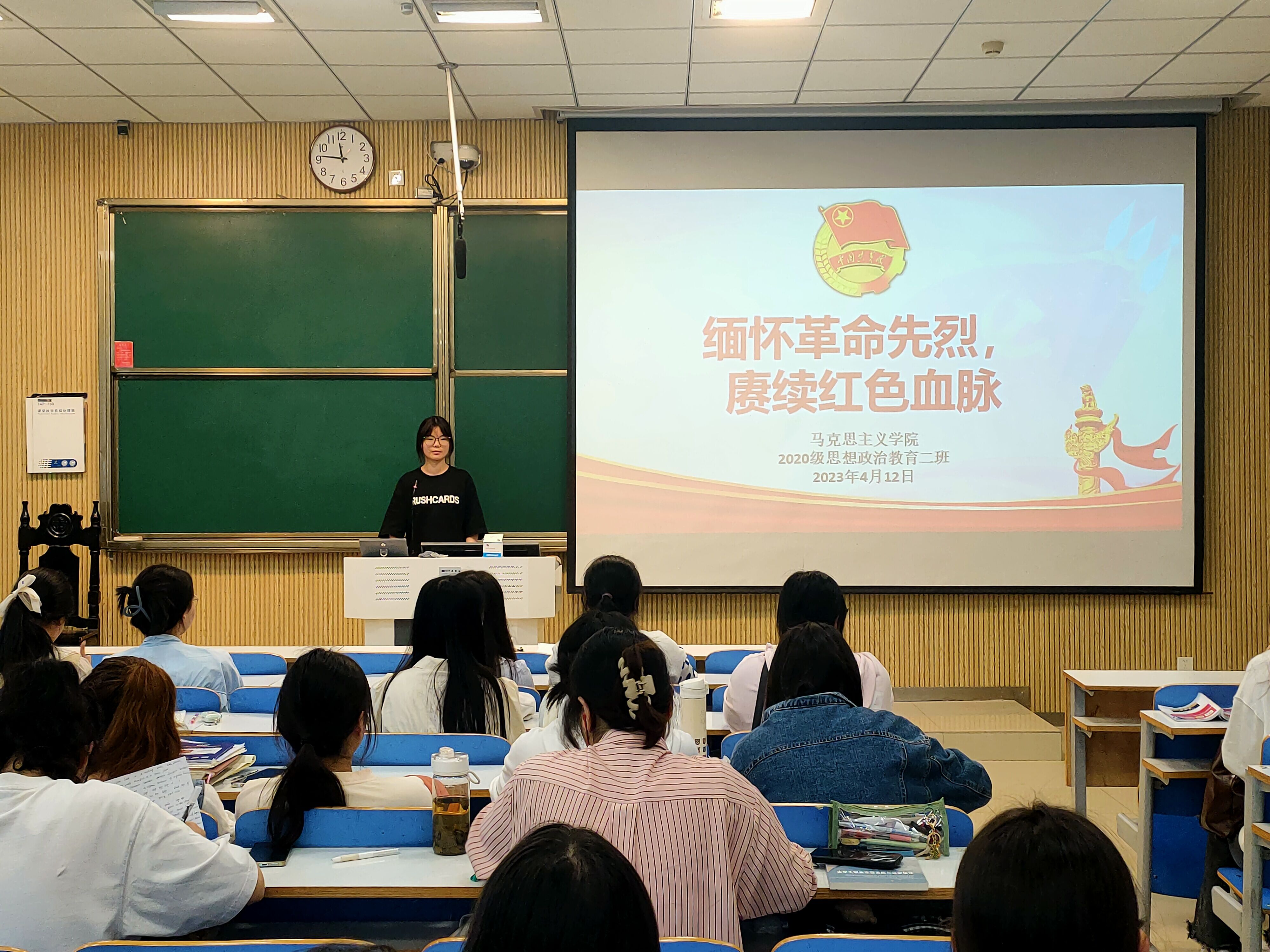 铭记先烈遗志,传承红色基因。4月12日上午,sjb世俱杯网站2020级思想政治教育二班、定向二班团支部在社科楼515教室开展“缅怀革命先烈,赓续红色血脉”主题团课。二班、定向二班全体团员共同参与团课。团课由团支书陈宇航讲授。