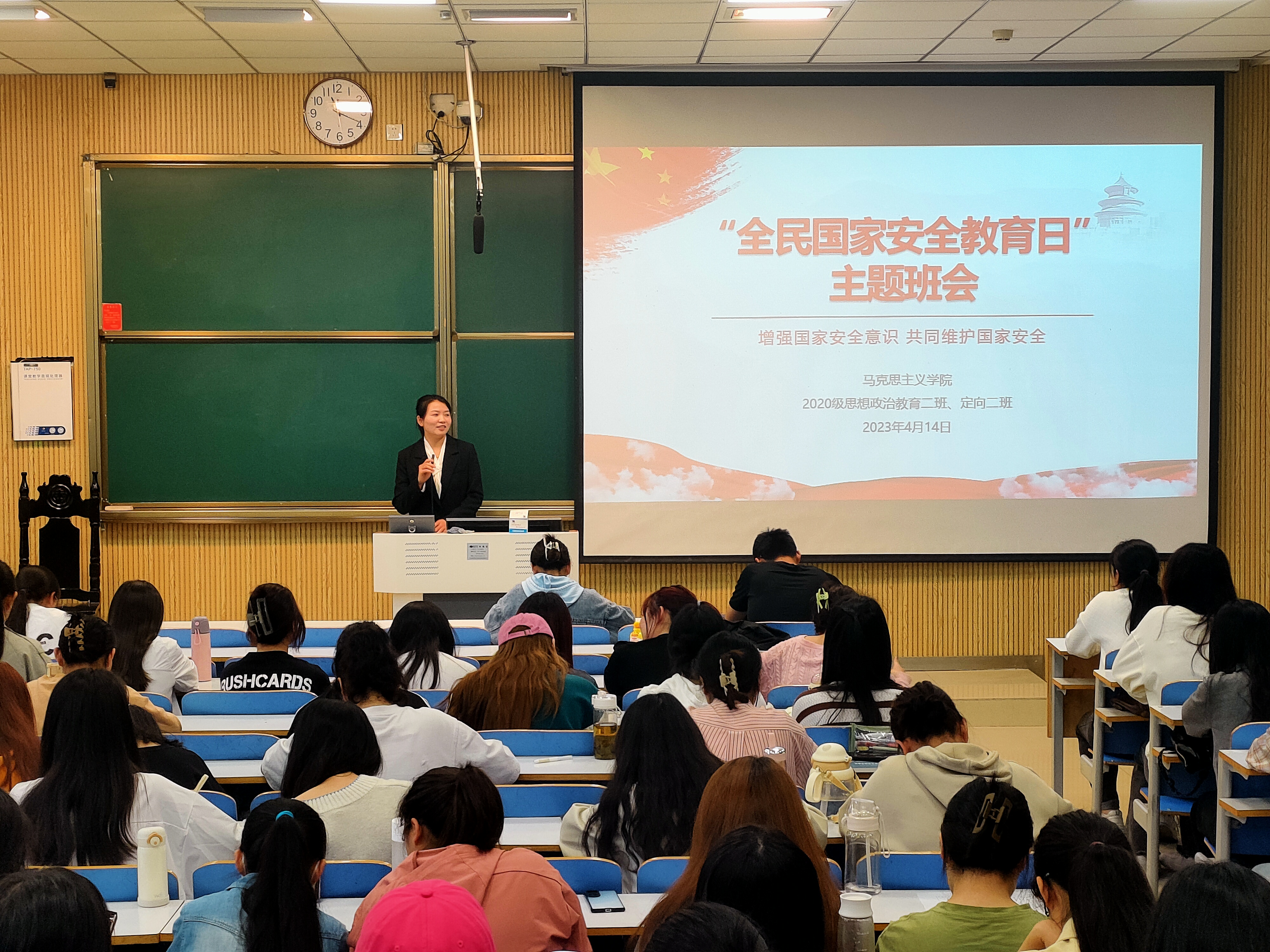 为进一步强化同学们的国家安全意识和捍卫国家安全的重要能力,4月14日上午,sjb世俱杯网站2020级思想政治教育二班、定向二班在社科楼515教室召开全民国家安全教育主题班会。辅导员陶青青、二班、定向二班全体学生共同参会。会议由陶青青主持。