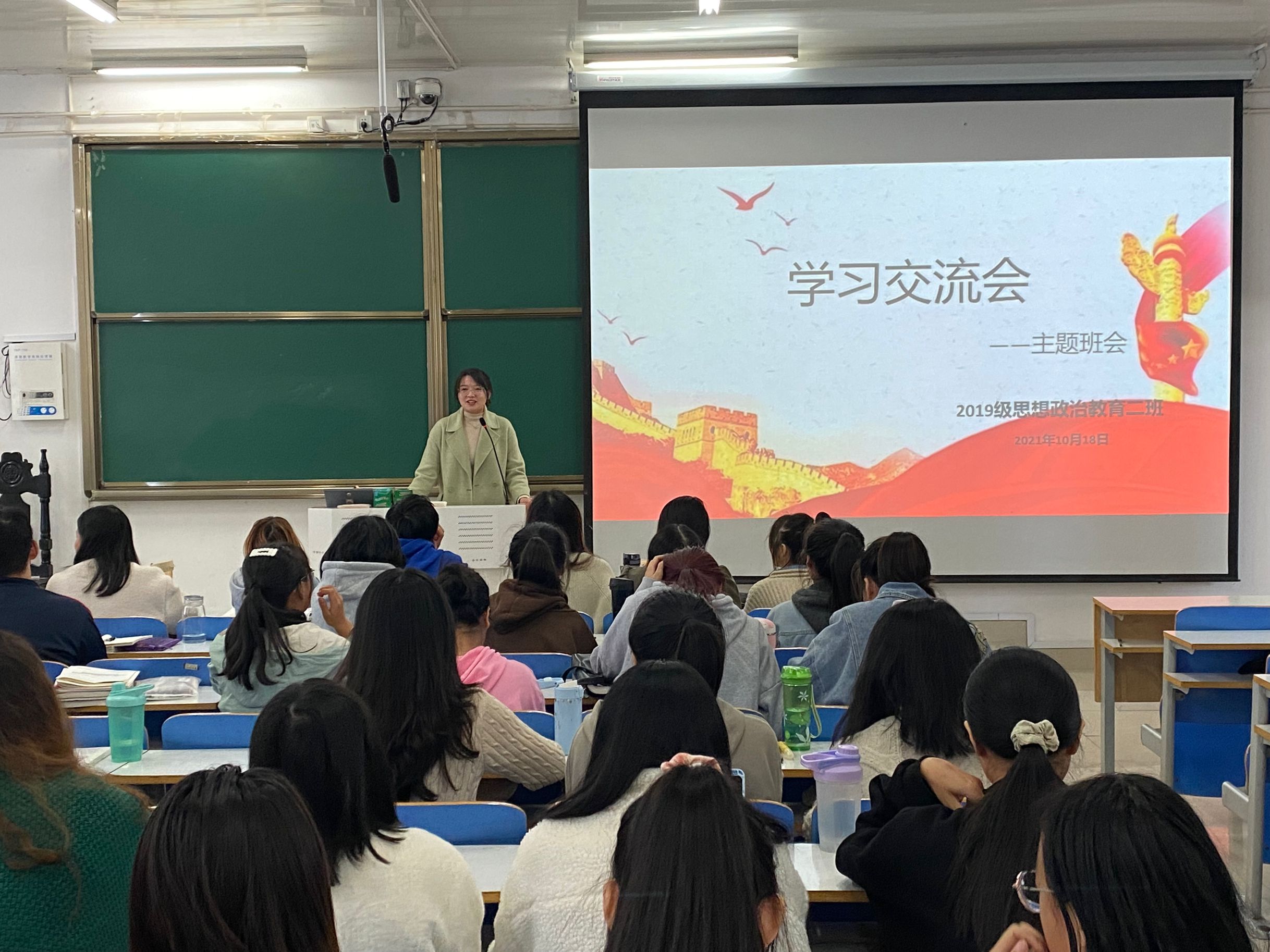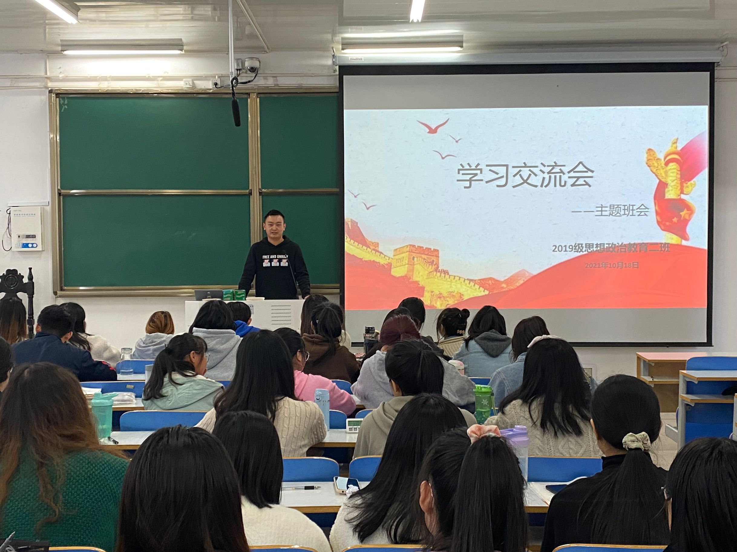10月18日上午,世俱杯官网2019级思想政治教育二班于社科楼514教室召开学习经验交流会。会议由团支书孙雅娴主持,我班四名学习成绩名列前茅的学生刘鹏、张莹、余姿瑾、宰金铭应邀进行交流与分享。辅导员陶青青及世俱杯官网2019级思想政治教育二班全体成员共同参会。
