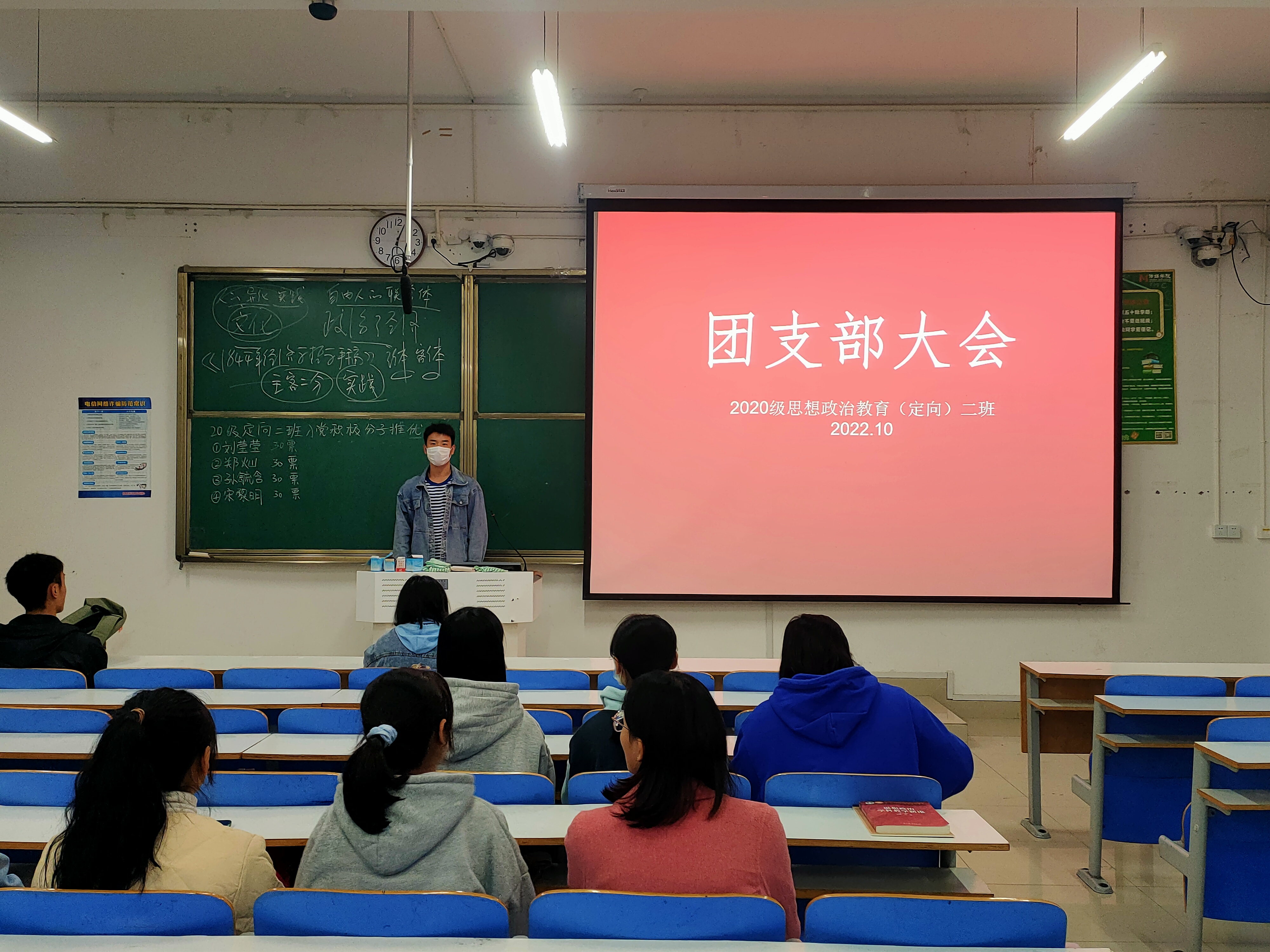 10月10日下午,sjb世俱杯网站2020级思想政治教育定向二班团支部在社科楼324教室召开2022年下半年入党积极分子推优大会。我支部全体团员参与会议。大会由班长高红凯主持。