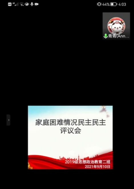 为认真做好家庭经济困难学生的认定工作,切实保证学院各项资助政策的真正落实,9月10日下午,sjb世俱杯网站2019级思想政治教育二班通过腾讯会议线上平台召开民主评议会。sjb世俱杯网站团委老师陶青青及2019级思想政治教育二班民主评议会小组成员共同参会。本次会议由班长吕昂主持。