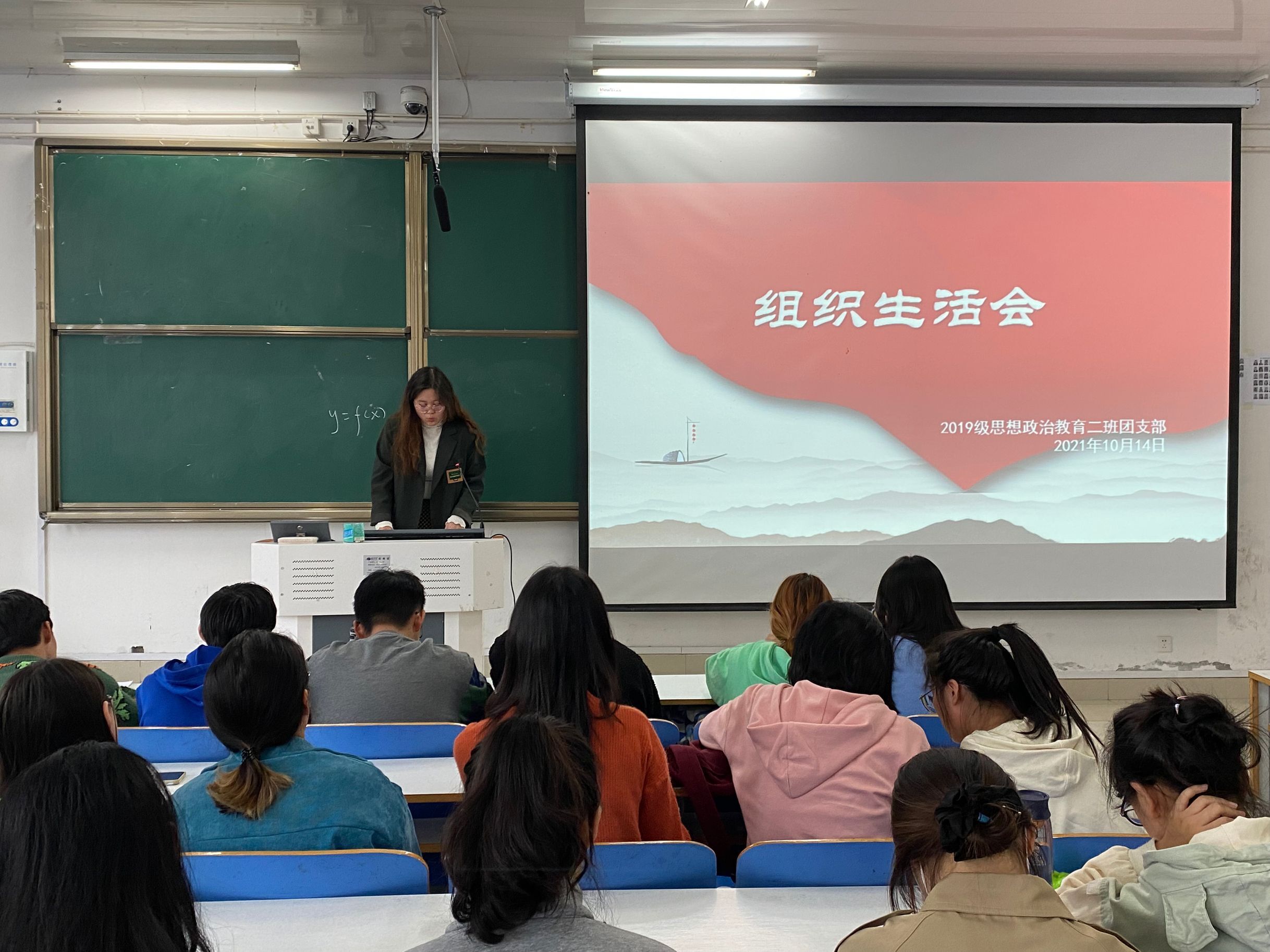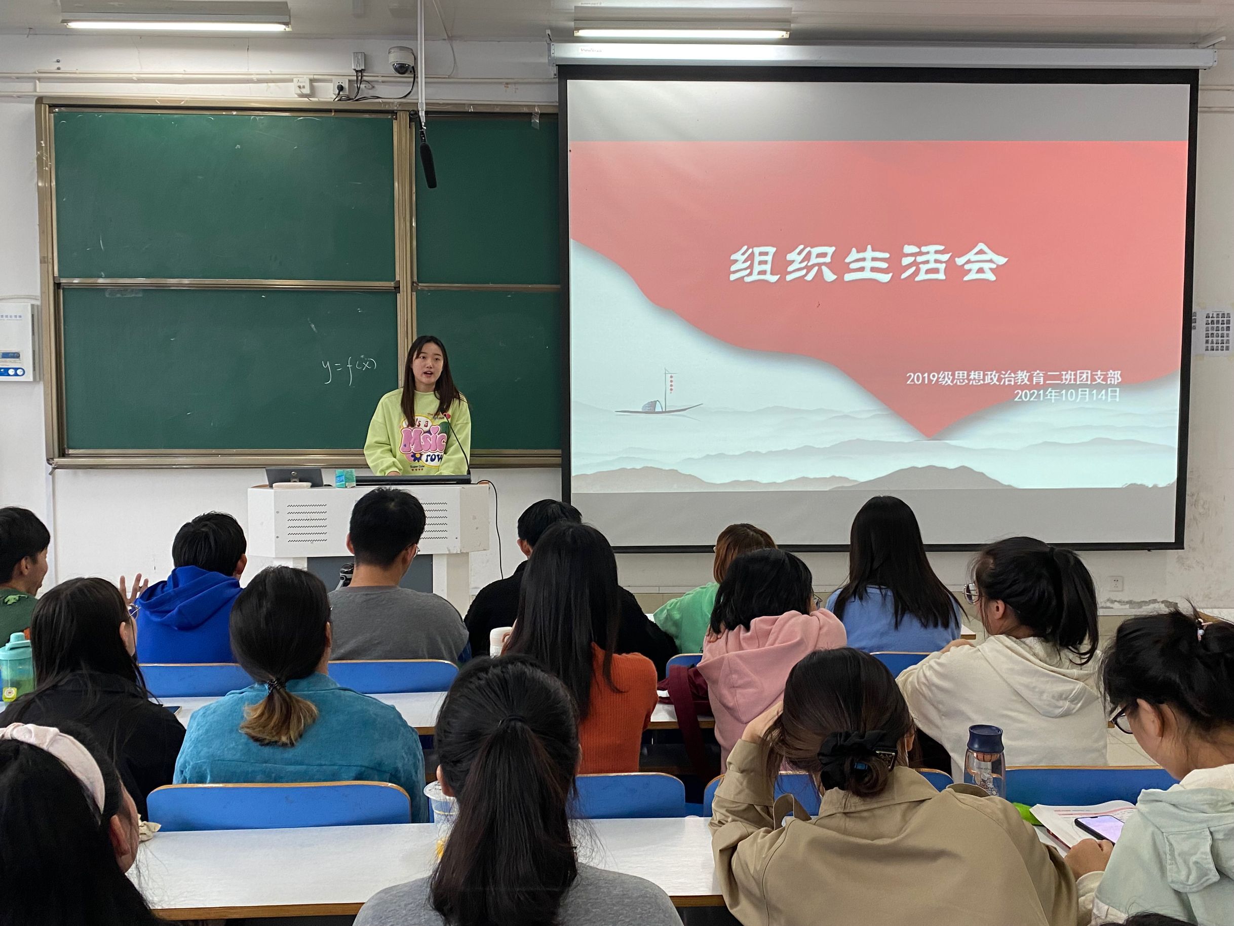为贯彻落实团中央《关于在全团开展“学党史、强信念、跟党走”》文件精神,进一步推动团支部党史学习教育走深走实,10月14日上午,sjb世俱杯网站2019级思想政治教育二班于社科楼516教室召开“学党史、强信念、跟党走”专题组织生活会。2019级思想政治教育二班全体成员共同参会。会议由团支书孙雅娴主持。