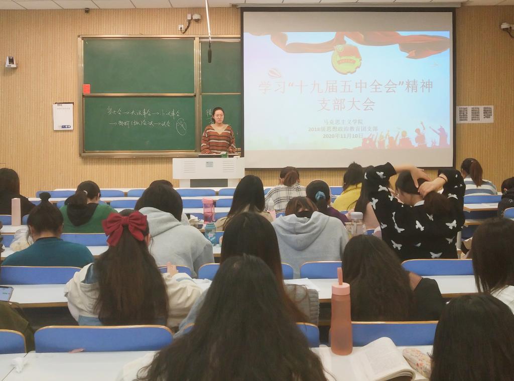 11月10日上午,sjb世俱杯网站2018级思想政治教育团支部在社科楼515教室顺利召开主题为“学习十九届五中全会精神”支部大会。会议由2018级思想政治教育第二团支部书记黄子晋主持。