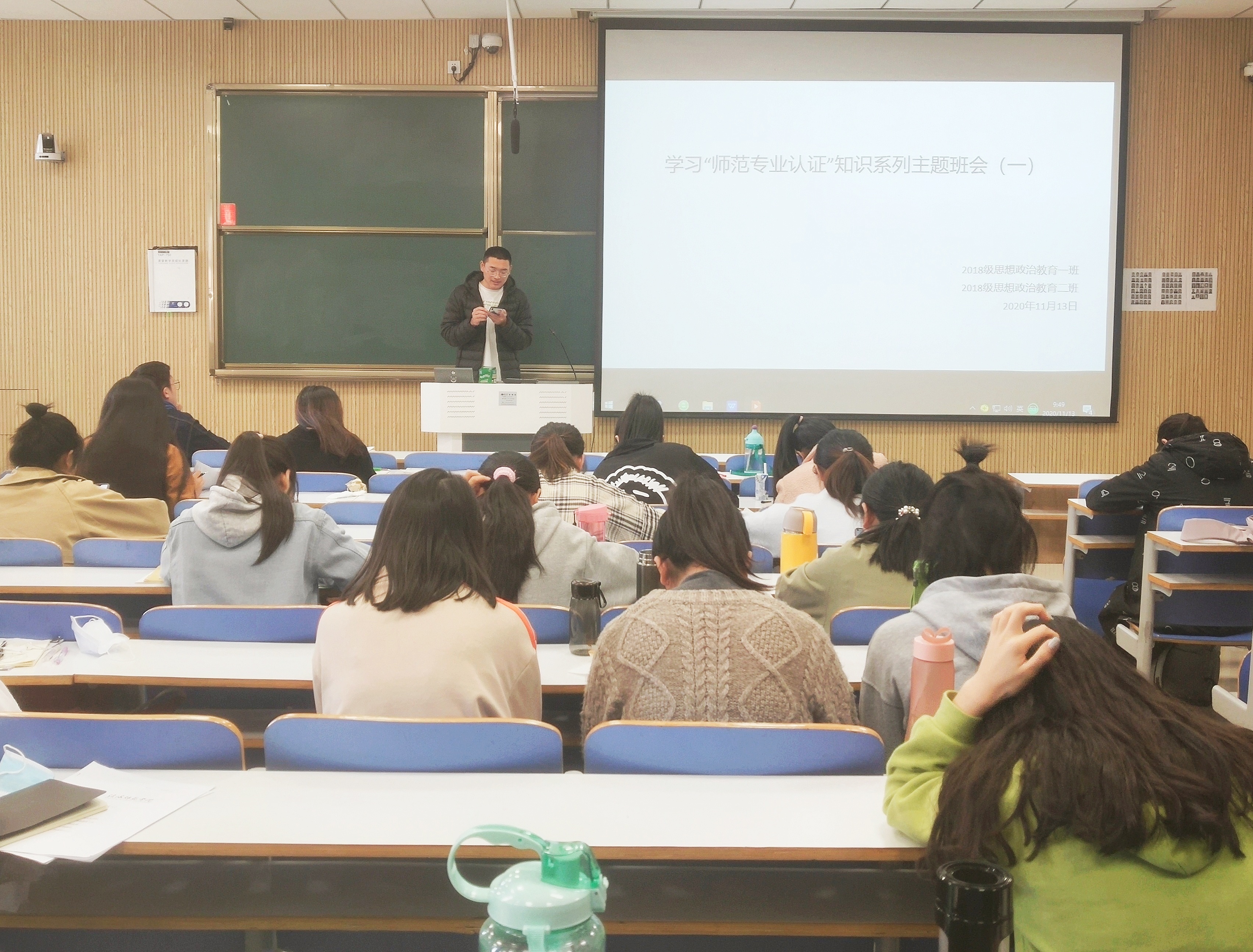 11月13日——11月16日,sjb世俱杯网站2018级思想政治教育二班在社科楼515教室顺利开展学习“师范专业认证”知识系列主题班会。会议由班长杨康主持。