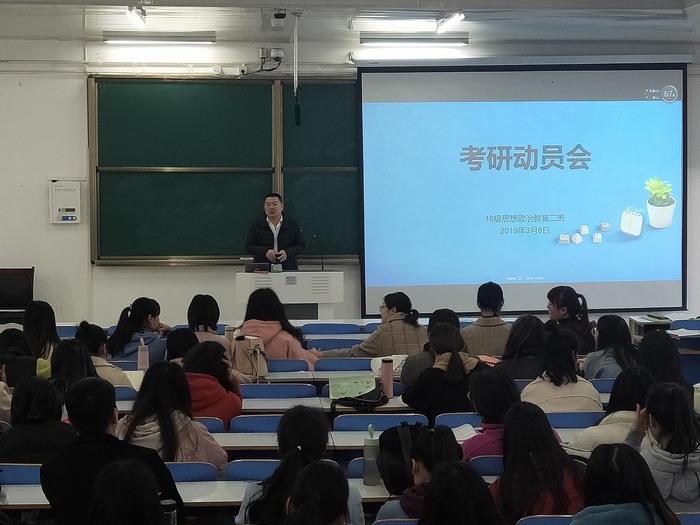 2019年3月12日上午10点,sjb世俱杯网站思想政治教育二班在社科楼514举行“考研动员会”,目的是向思想政治教育二班的同学进行考研动员,为同学们的考研复习做出指导。本次班会由何晓坚书记进行讲解指导,由葛格主持。