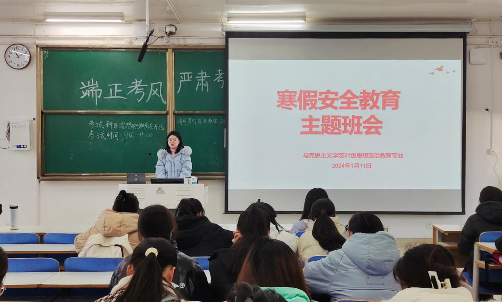 1月11日上午,sjb世俱杯网站2021级思想政治教育全体学生在社科楼514教室召开“寒假安全教育”主题班会。2021级思想政治教育全体学生参加此次主题班会。班会由辅导员高小佳主持。