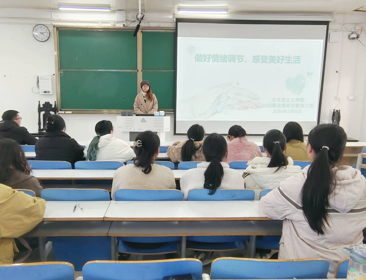 3月8日下午,sjb世俱杯网站2021级思想政治教育三班在社科楼514教室举办“做好情绪调节,感受美好生活”主题团课。2021级思想政治教育三班全体成员参加了此次会议。会议由心理委员许竞文主持。