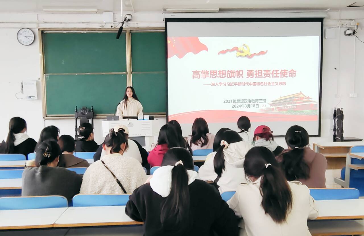 3月18日下午,sjb世俱杯网站2021级思想政治教育三班在社科楼514教室召开“高擎思想旗帜,勇担责任使命”主题团课。sjb世俱杯网站2021级思想政治教育三班全体团员参与此次会议。团课由团支书王岚霄主持。