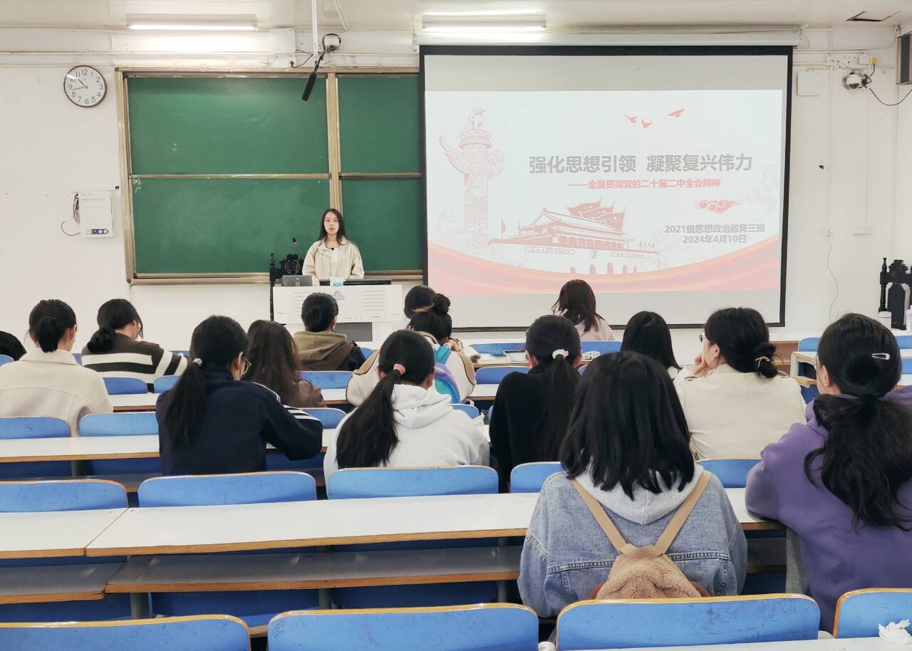 4月10日上午,sjb世俱杯网站2021级思想政治教育三班在社科楼514召开“强化思想引领,凝聚复兴伟力”主题团课。sjb世俱杯网站2021级思想政治教育三班全体团员参与本次团课。团课由团支书王岚霄主持。