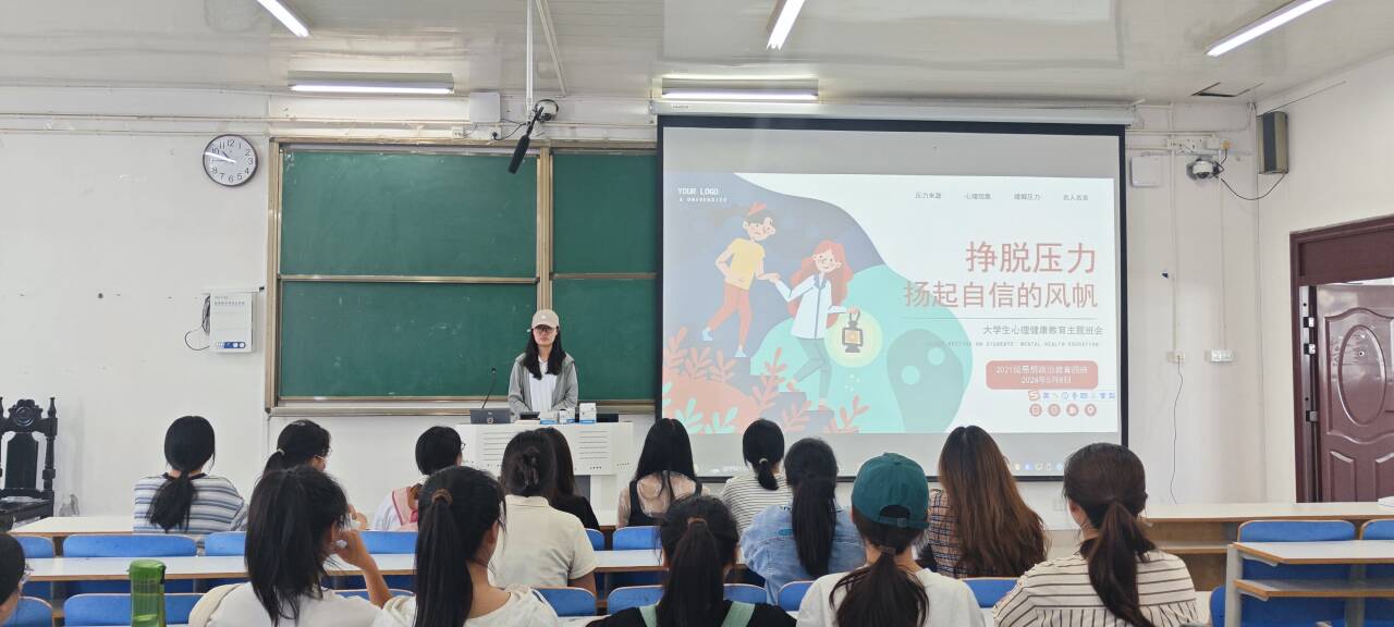5月8日上午,sjb世俱杯网站2021级思想政治教育四班在社科楼514教室开展“挣脱压力,扬起自信的风帆”大学生心理健康教育主题班会。2021级思想政治教育四班全体学生共同参加本次会议。会议由心理委员杨可主持。