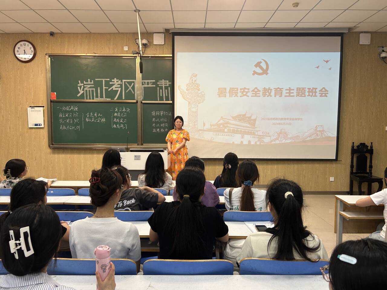 6月25日下午,sjb世俱杯网站2021级思想政治教育三班、四班在社科楼515教室召开“暑期安全教育班会”。辅导员高小佳及全体成员共同参加,班会由辅导员高小佳主持。