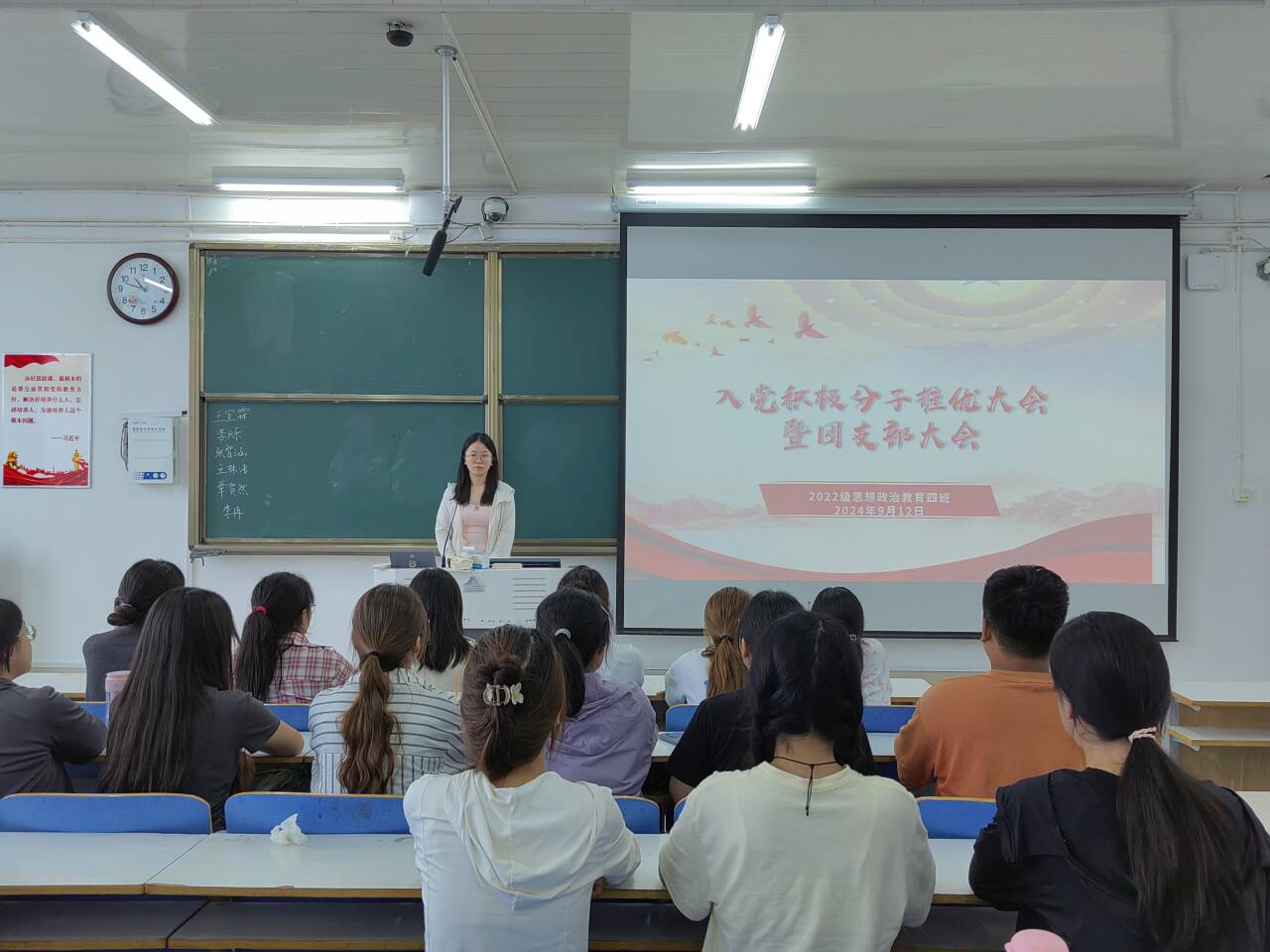 9月12日上午,sjb世俱杯网站2022级思想政治教育四班在社科楼514教室组织召开“入党积极分子推优大会暨团支部大会”。世俱杯官网2022级思想政治教育四班全体团员参与本次大会。本次大会由团支书牛志杰主持。