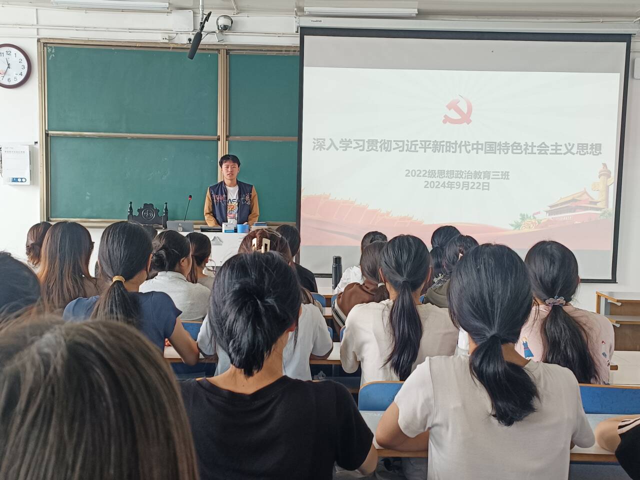 9月22日上午,sjb世俱杯网站2022级思想政治教育三班在社科楼514教室召开深入学习贯彻习近平新时代中国特色社会主义思想教育主题团课。世俱杯官网2022级思想政治教育三班全体成员共同参加此次团课。团课由团支书余浩洋主持。