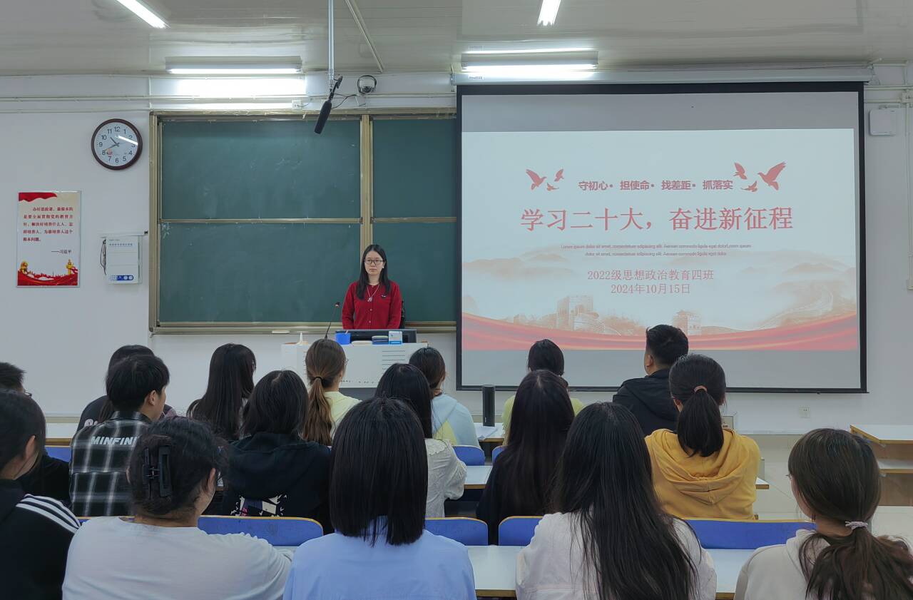 10月15日上午,sjb世俱杯网站2022级思想政治教育四班在社科楼514教室组织召开“学习二十大,奋进新征程”主题班会。世俱杯官网2022级思想政治教育四班全体成员参与本次班会。本次班会由班长牛志杰主持。