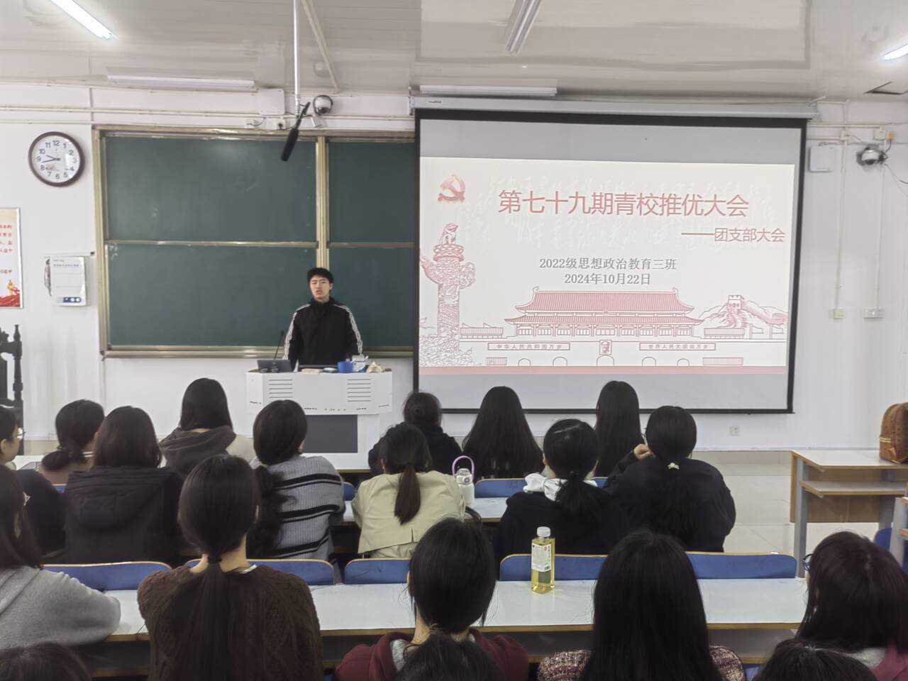 10月22日上午,sjb世俱杯网站2022级思想政治教育三班在514教室开展第七十九期青校推优大会。世俱杯官网2022级思想政治教育三班全体团员共同参与此次推优大会。大会由团支书余浩洋主持。